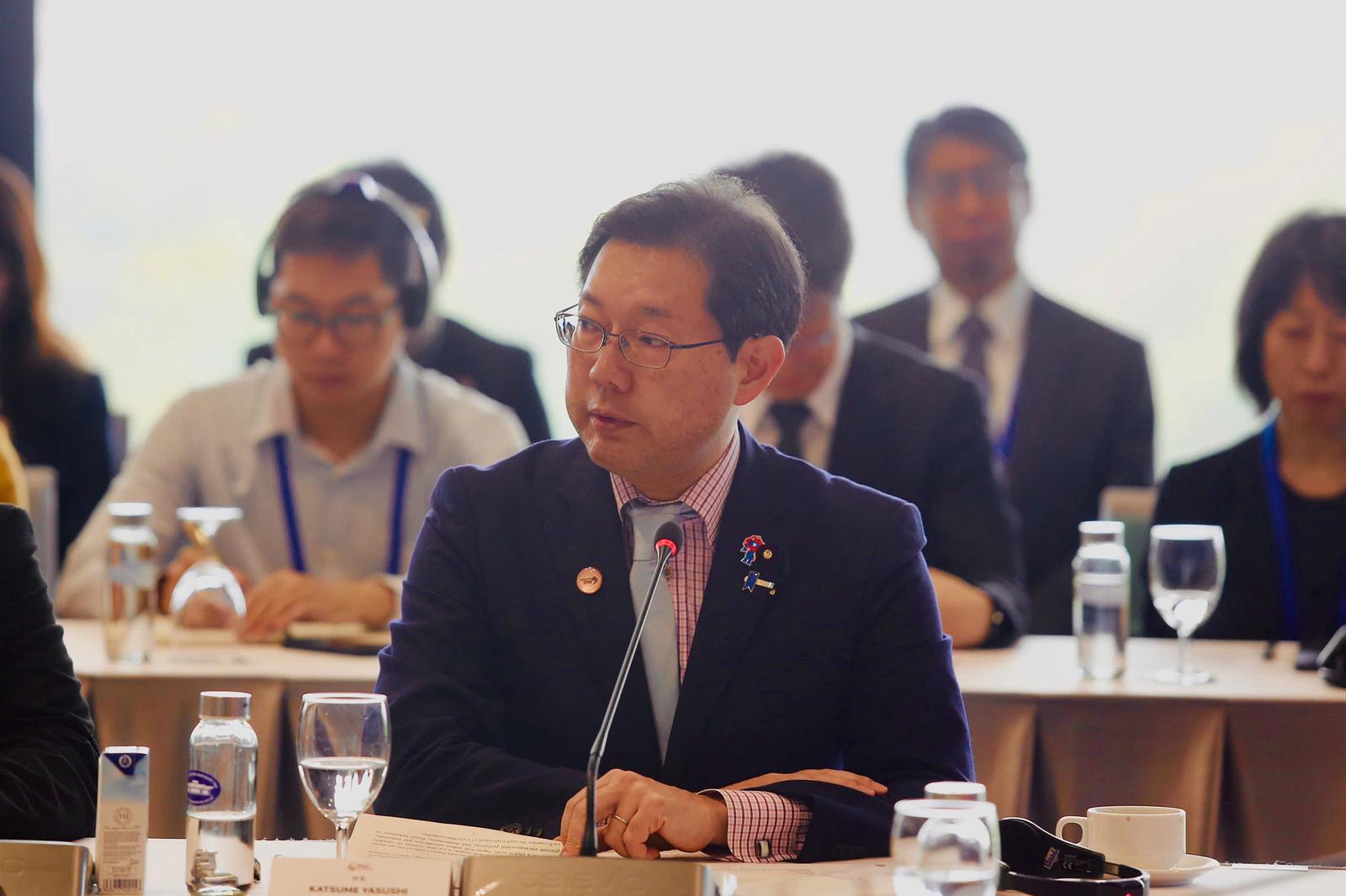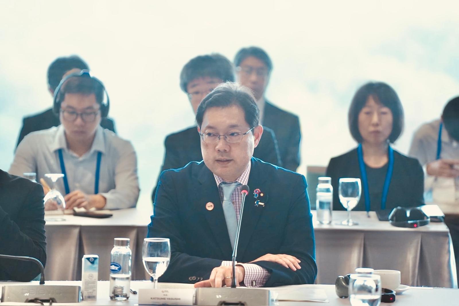 Thứ trưởng Bộ Môi trường Nhật Bản Katsume Yasushi đã chia sẻ ba đóng góp của Nhật Bản liên quan đến các công nghệ tiên tiến, là chủ đề của phiên họp này đó là công nghệ cải thiện môi trường sống và vấn đề vệ sinh, chuyển đổi chất thải thành năng lượng; công nghệ hỗ trợ nền kinh tế tuần hoàn và công nghệ giám sát môi trường để giải quyết các thách thức toàn cầu, bao gồm cuộc khủng hoảng môi trường ba bên là biến đổi khí hậu, mất đa dạng sinh học và ô nhiễm.