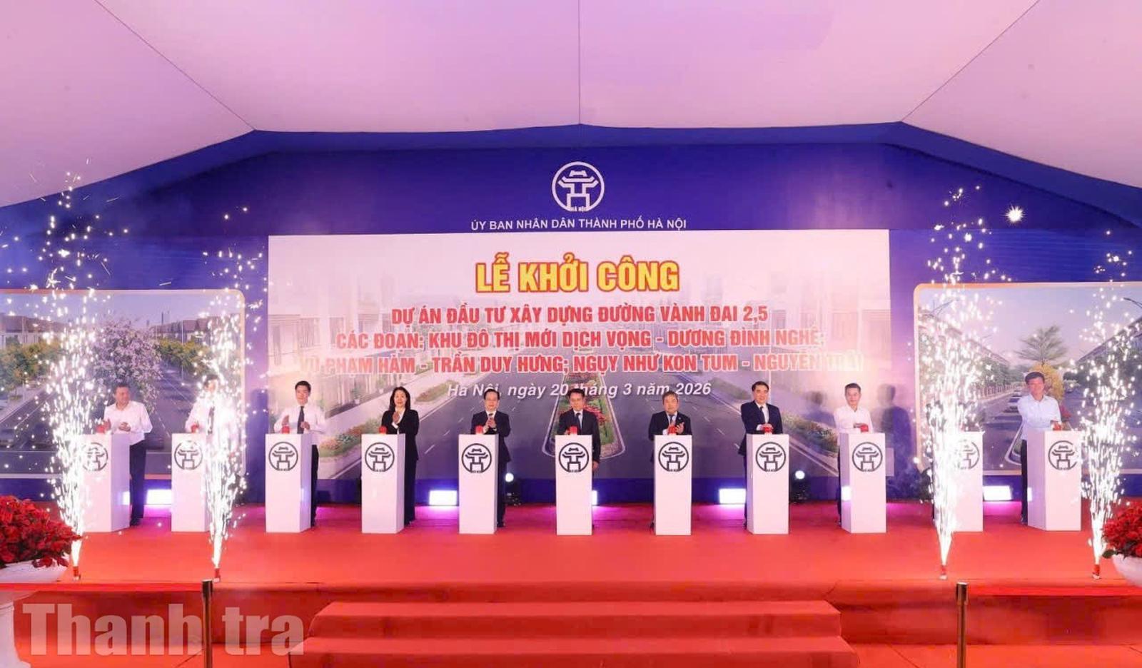(Thanh tra) - Sáng 20/3, UBND thành phố Hà Nội tổ chức lễ khởi công ba đoạn tuyến quan trọng của đường Vành đai 2.5, để xử lý các điểm nghẽn, cấp bách về ùn tắc giao thông trên địa bàn Thủ đô.