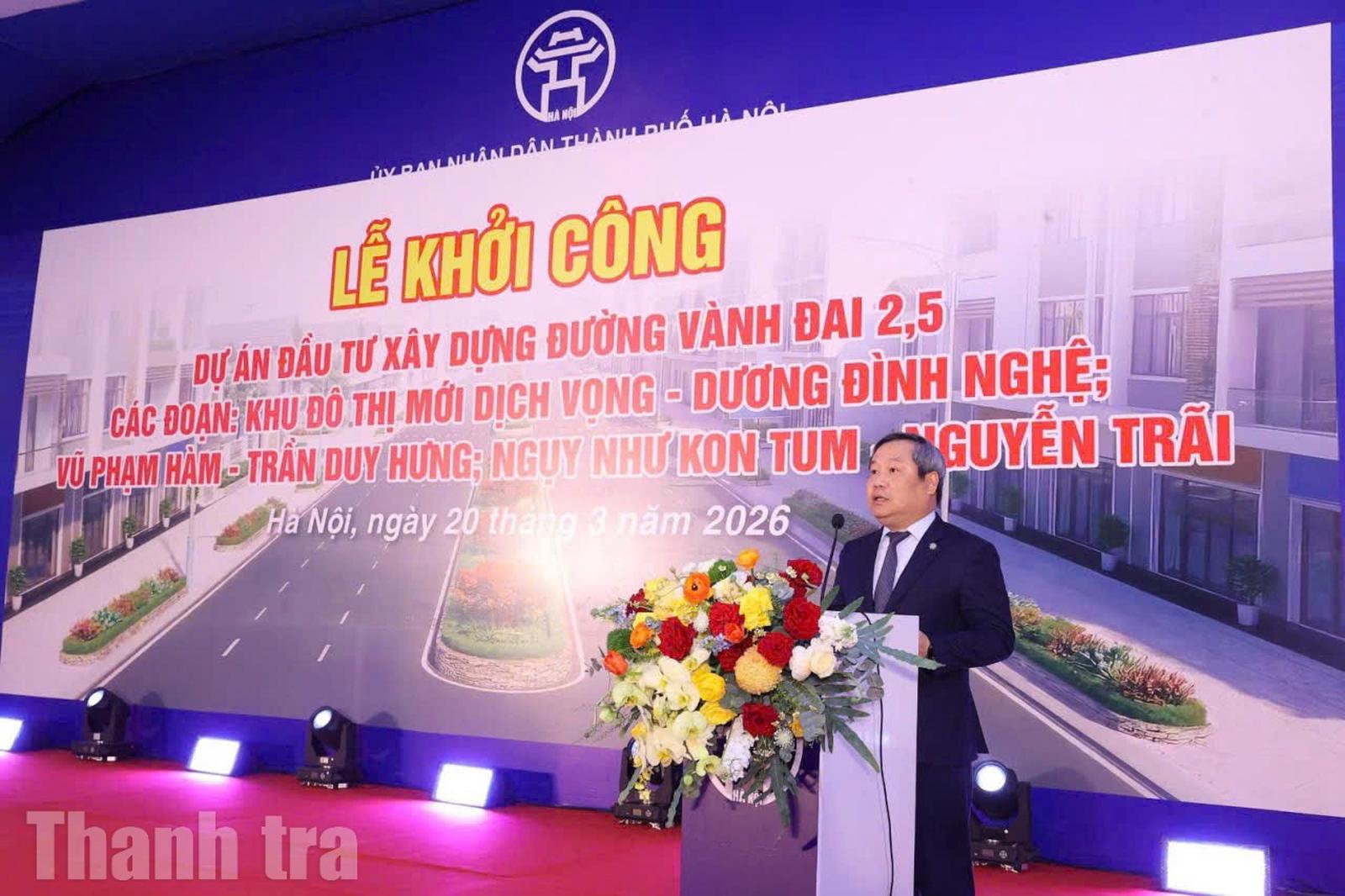 Phát biểu tại lễ khởi công, Chủ tịch UBND thành phố Hà Nội Vũ Đại Thắng cho biết, Dự án đầu tư xây dựng đường Vành đai 2.5 là công trình giao thông quan trọng, được triển khai theo lệnh xây dựng công trình khẩn cấp của thành phố nhằm xử lý các điểm nghẽn, cấp bách về giao thông; hoàn thiện hệ thống hạ tầng, nâng cao năng lực kết nối, tạo động lực phát triển kinh tế - xã hội và chỉnh trang đô thị.