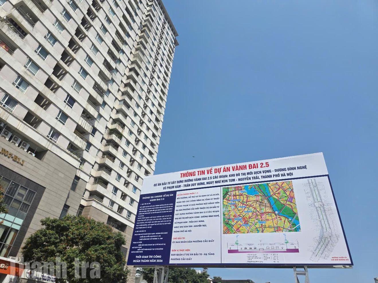 Thông tin về Dự án đường Vành đai 2.5 đoạn Khu đô thị mới Dịch Vọng. Ảnh: HH
