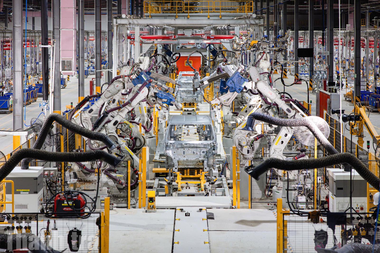 Hệ thống sản xuất bằng robot tự động bên trong Nhà máy sản xuất ô tô điện VinFast Hà Tĩnh. Ảnh: NT