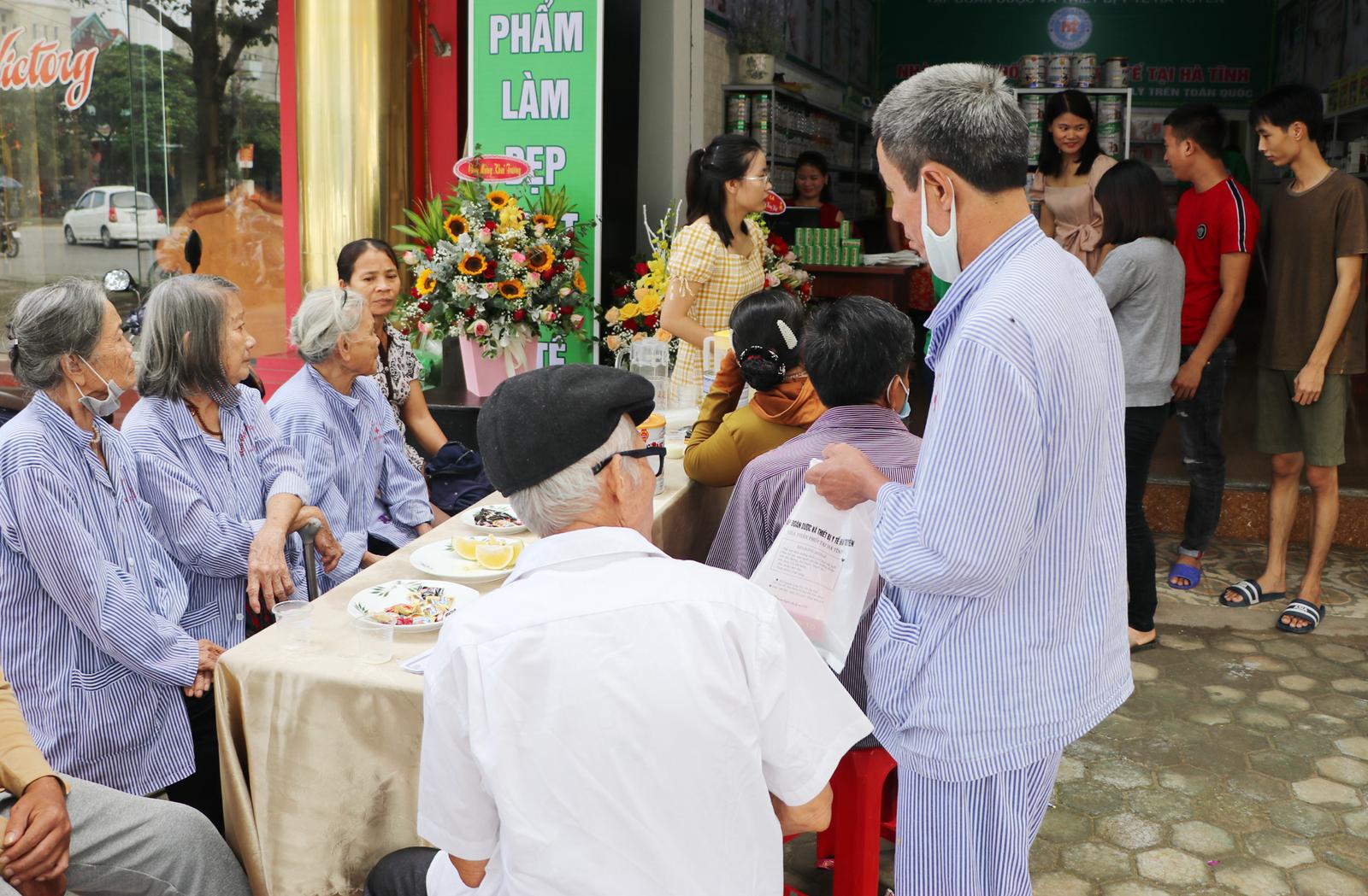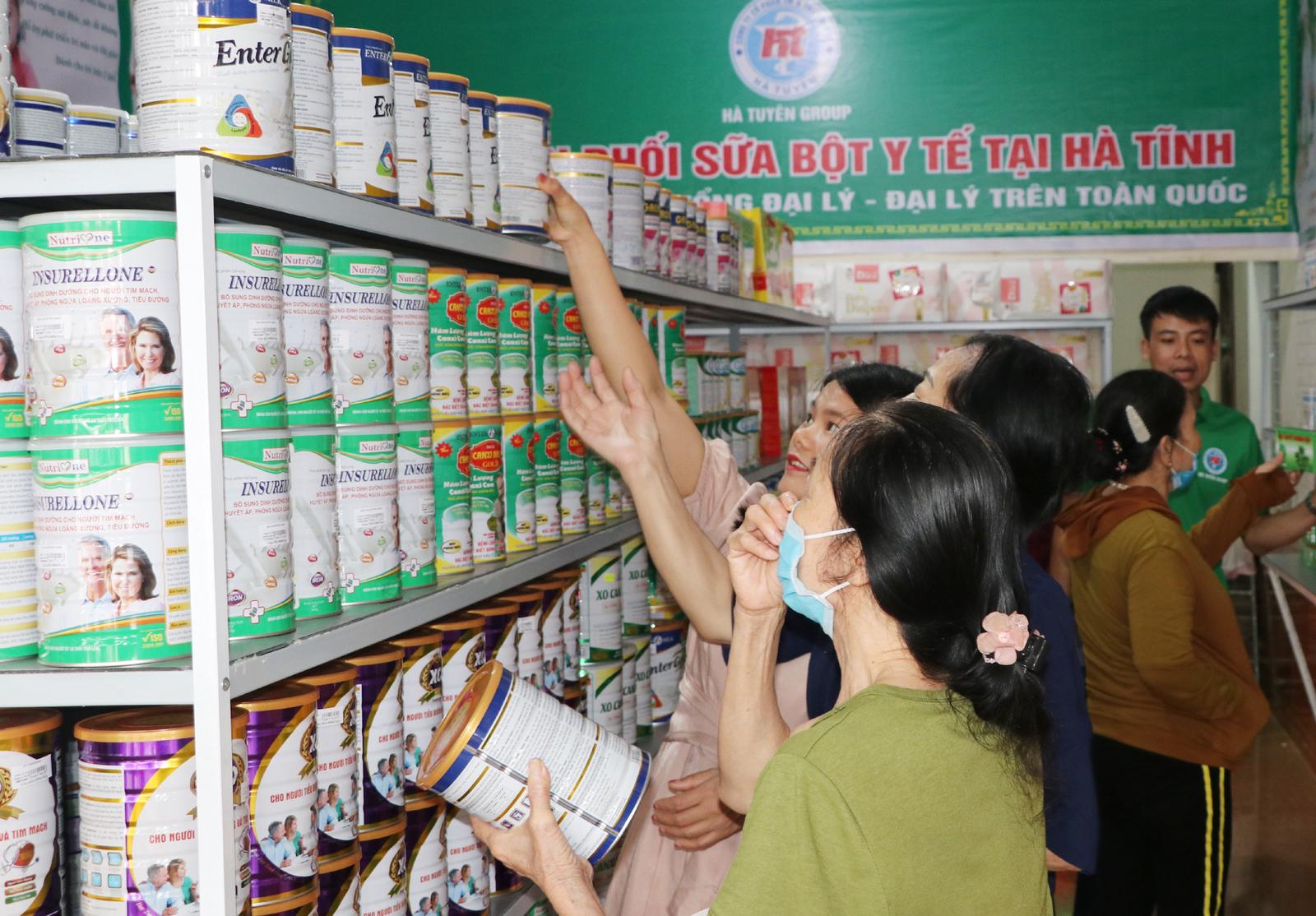 Nhiều bệnh nhân tới tham quan, mua sản phẩm và uống sữa, nhận quà tặng miễn phí tại Tổng đại lý Hà Tĩnh của Hà Tuyên Group