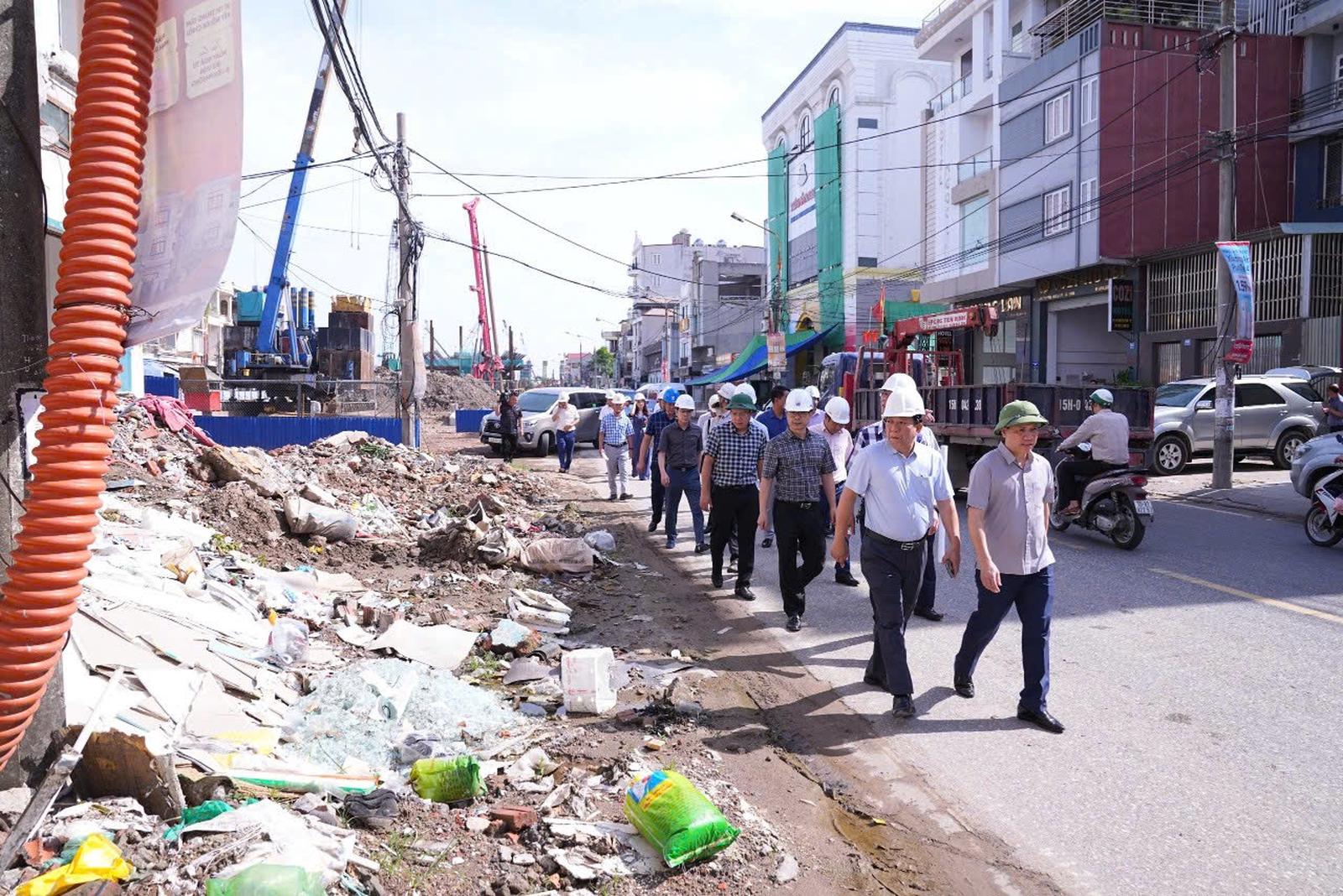 Phó Chủ tịch UBND thành phố Nguyễn Đức Thọ kiểm tra thực đại tại công trường thi công dự án. Ảnh: KT