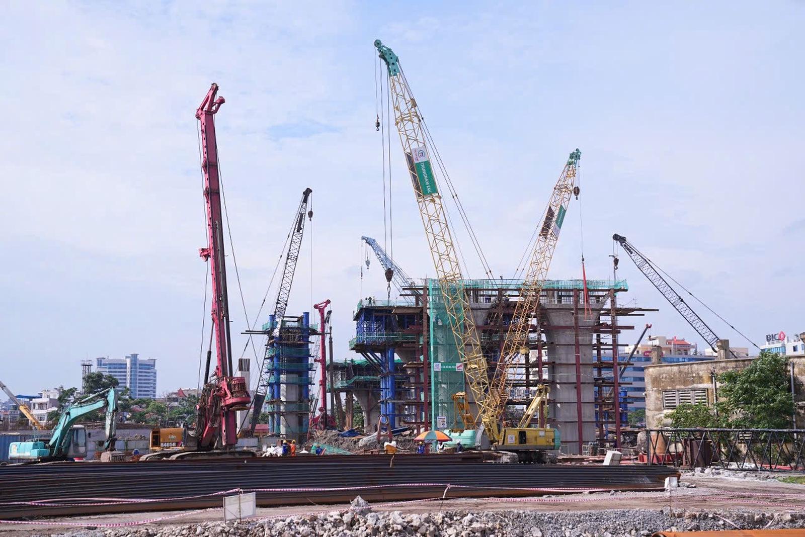 Dự án đầu tư xây dựng cầu Nguyễn Trãi và chỉnh trang đô thị vùng phụ cận đang được các nhà thầu tích cực đẩy nhanh tiến độ thi công. Ảnh: KT