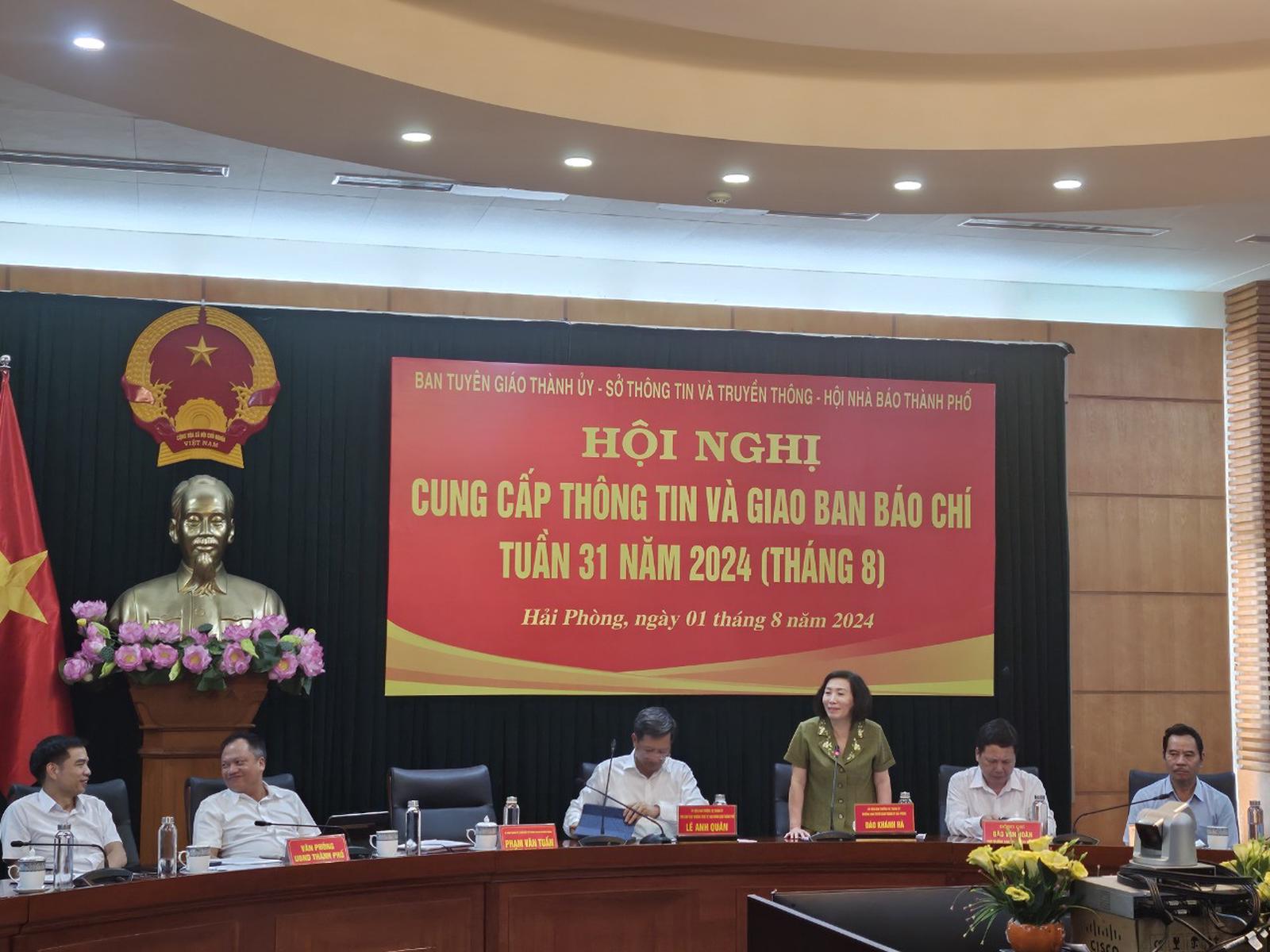 Kết luận hội nghị, Trưởng Ban Tuyên giáo Thành ủy Đào Khánh Hà đề nghị các cơ quan báo chí tuyền truyền những kết quả đã đạt được trong 5 năm qua theo Nghị quyết 45-NQ/TW của Bộ Chính trị ban hành. Đồng thời, đề nghị tiếp tục tuyên truyền những kết quả đã đạt được trong 7 tháng năm 2024; phát triển kinh tế được thực hiện đi đôi với phát triển văn hóa - xã hội; giáo dục và đào tạo, y tế, khoa học công nghệ và đổi mới sáng tạo; hệ thống thiết chế văn hóa cơ sở được đầu tư xây dựng mới, cải tạo, nâng cấp; nhiều lễ hội được duy trì, tổ chức đúng định hướng của Nhà nước và thực sự trở thành ngày hội, mang đậm bản sắc văn hoá Hải Phòng như Lễ hội Chọi trâu, Lễ hội Làng cá Cát Bà, Lễ hội Nữ tướng Lê Chân, Lễ hội Hoa Phượng Đỏ…