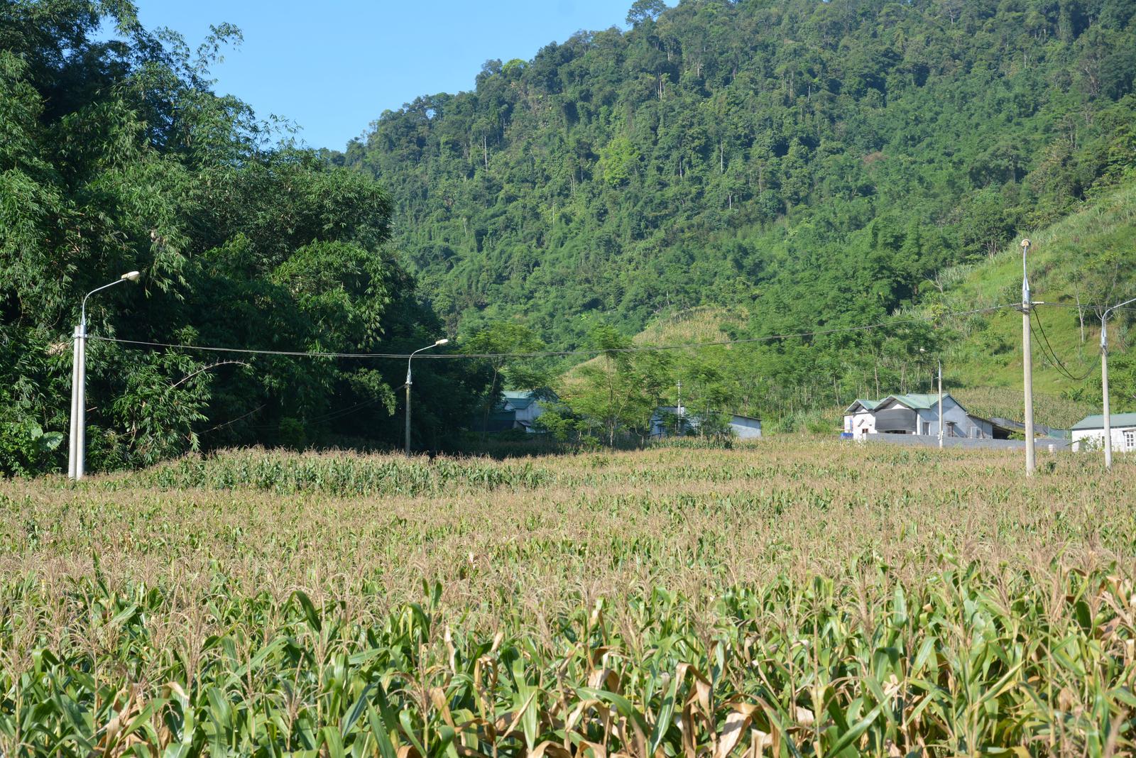 Do sân thể thao không hoạt động nên các hộ “mượn” đất để trồng ngô. Nên gần 5 năm nay, 6 cột đèn cao áp án ngữ quanh vườn ngô, vìa rừng.