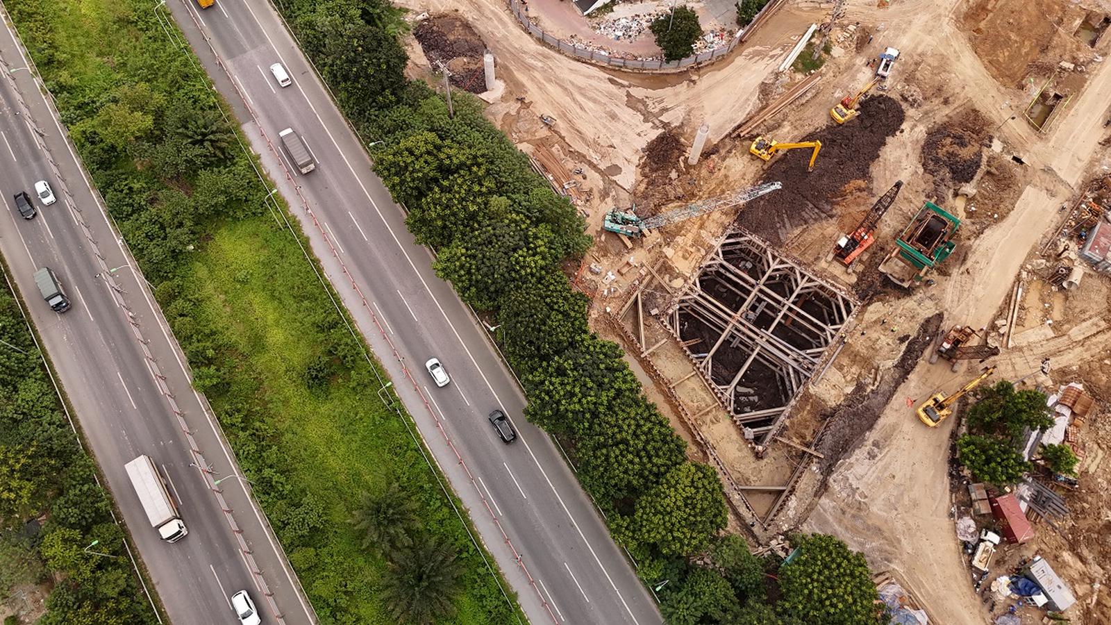 Hạng mục hầm chui trực thông nối từ đường Hoàng Tùng xuyên qua Đại lộ Thăng Long nối vào Quốc lộ 32 dần lộ hình hài. Phía Quốc lộ 32, hầm hở được thiết kế dài 157,5m, tường chắn dài 200m, phần còn lại là gờ chắn bánh cũng đã dần lộ diện những hạng mục thô đầu tiên.