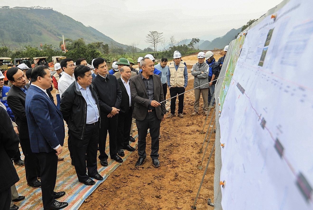 Phó Thủ tướng Chính phủ Nguyễn Chí Dũng cùng lãnh đạo tỉnh Hoà Bình kiểm tra tình hình thực hiện dự án cao tốc Hòa Bình - Mộc Châu. Ảnh: VGP/Minh Ngọc