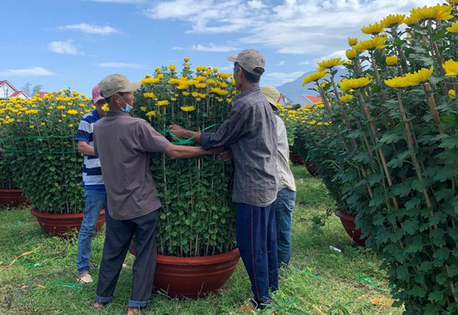 (Thanh tra) - Còn hơn một tuần nữa là đến Tết Nguyên đán Nhâm Dần 2022, làng hoa cúc phường Ninh Giang, thị xã Ninh Hòa, Khánh Hòa trở nên nhộn nhịp. Hàng đoàn xe tải hối hả ngược xuôi vận chuyển hàng chục ngàn chậu hoa cúc đại đóa, cúc pha lê, đại đóa, hoa hồng… đi khắp các tỉnh, thành trong cả nước để tiêu thụ.