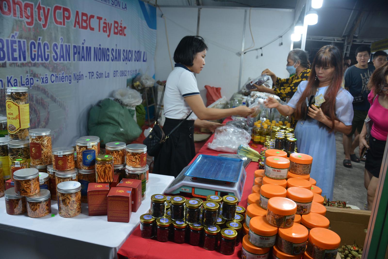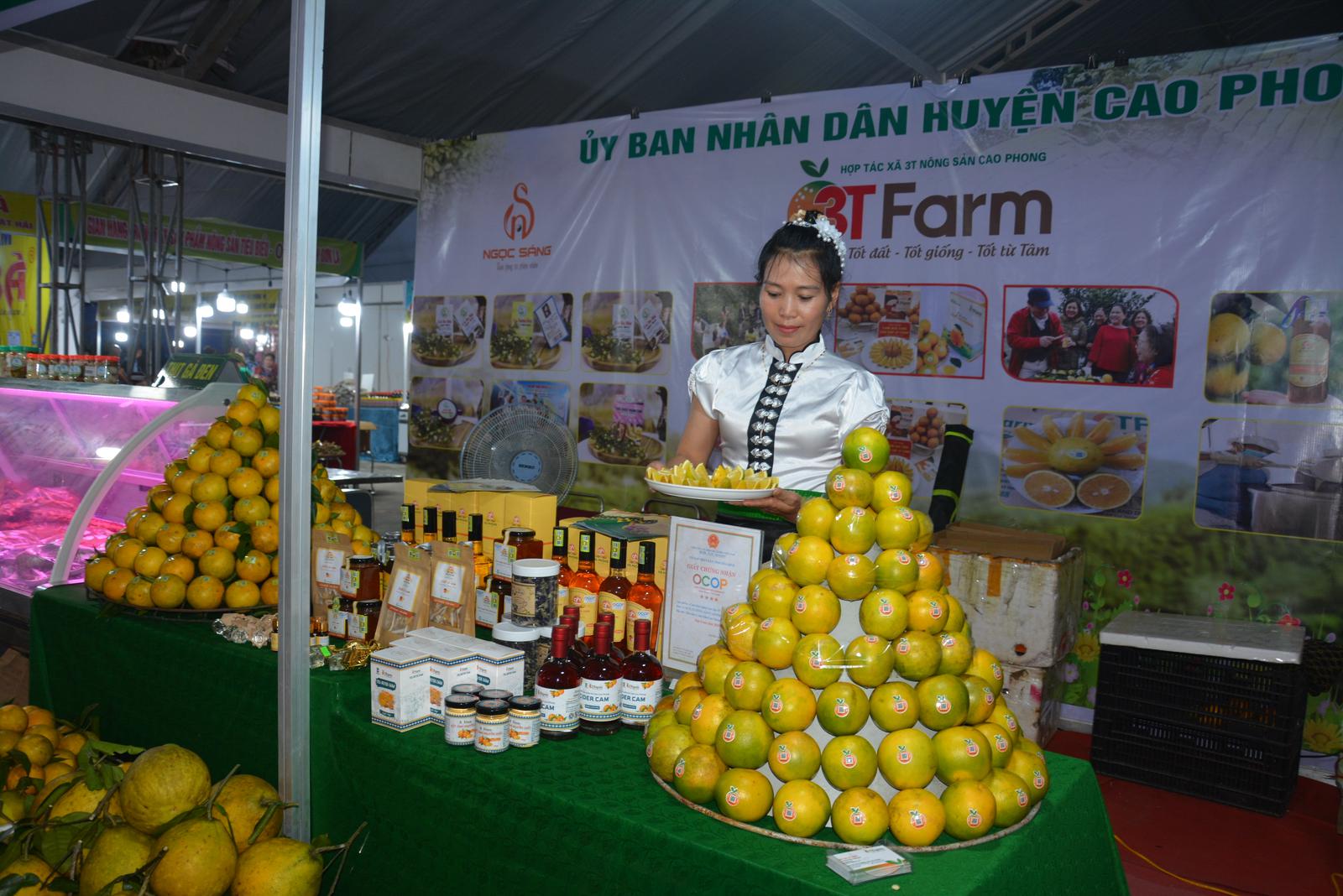 Các doanh nghiệp, HTX trưng bày chủ yếu 3 dòng sản phẩm chính: Cá tươi sống; sản phẩm cá phi lê và một số sản phẩm cá chế biến sâu. Còn lại là các gian hàng trưng bày sản phẩm nông nghiệp tiêu biểu đạt chuẩn OCOP 3 sao, 4 sao như: Gà ri sạch (Lạc Thủy), gà sạch HTX Hương Nhượng (Lạc Sơn), thịt gà đồi, lợn bản địa (Đà Bắc), rau củ cải Quyết Chiến, bưởi xanh (Tân Lạc). Chuối tiêu Vi va (Lương Sơn), mật ong rừng Thượng Tiến (Kim Bôi), cao cà gai leo, cao xạ đen, bưởi diễn, tinh dầu lạc, dầu vừng đen (Yên Thủy), cam Cao Phong...