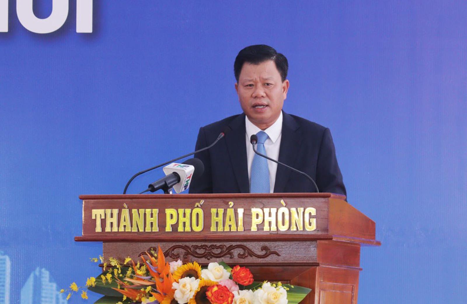 Trưởng Ban Quản lý Khu kinh tế Hải Phòng Lê Trung Kiên phát biểu. Ảnh: Kim Thành