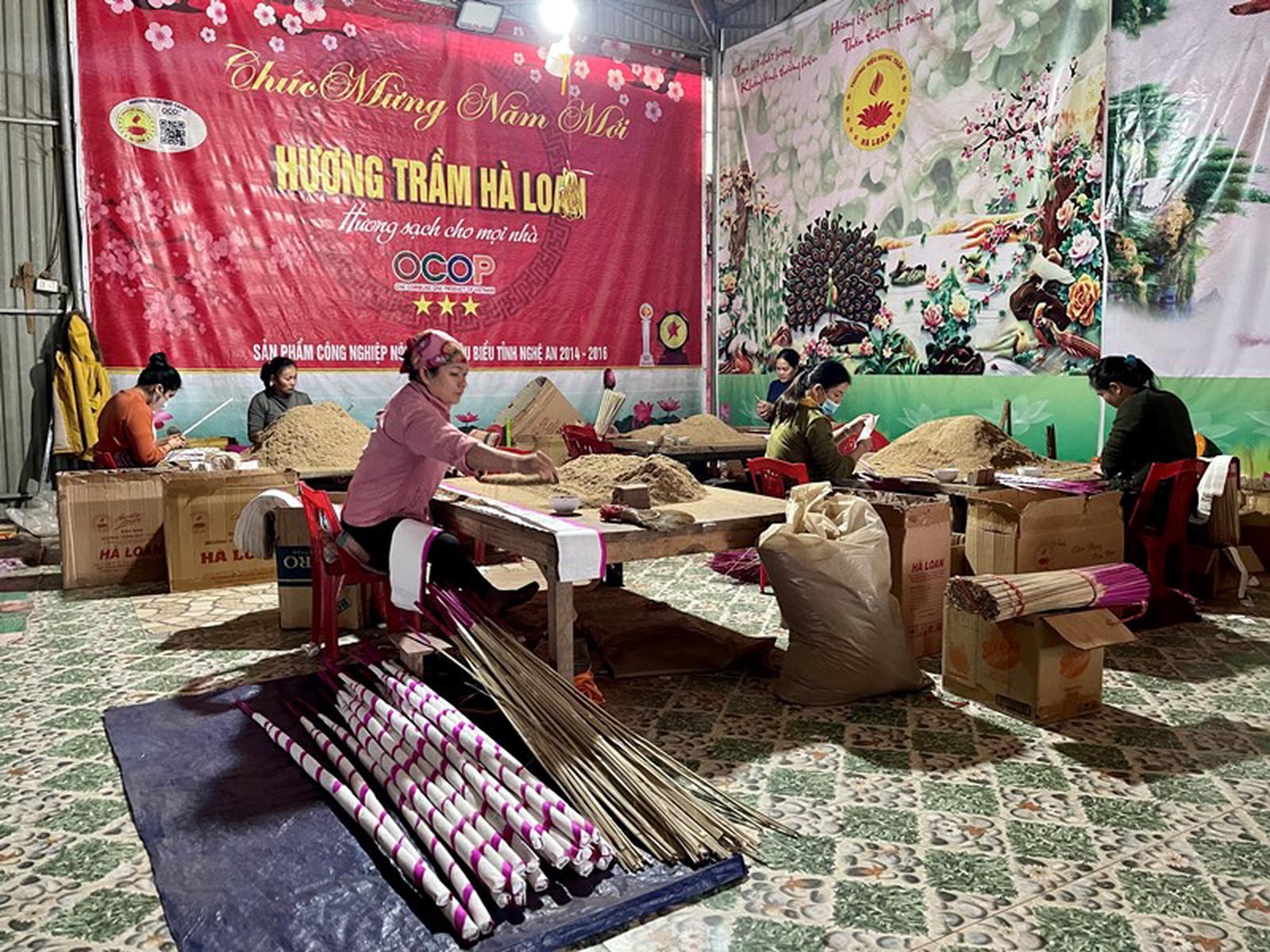 Làng nghề hương trầm Quỳ Châu được quan tâm đầu tư, phát triển, được đăng ký bảo hộ thương hiệu độc quyền. Ảnh: Hải Yến