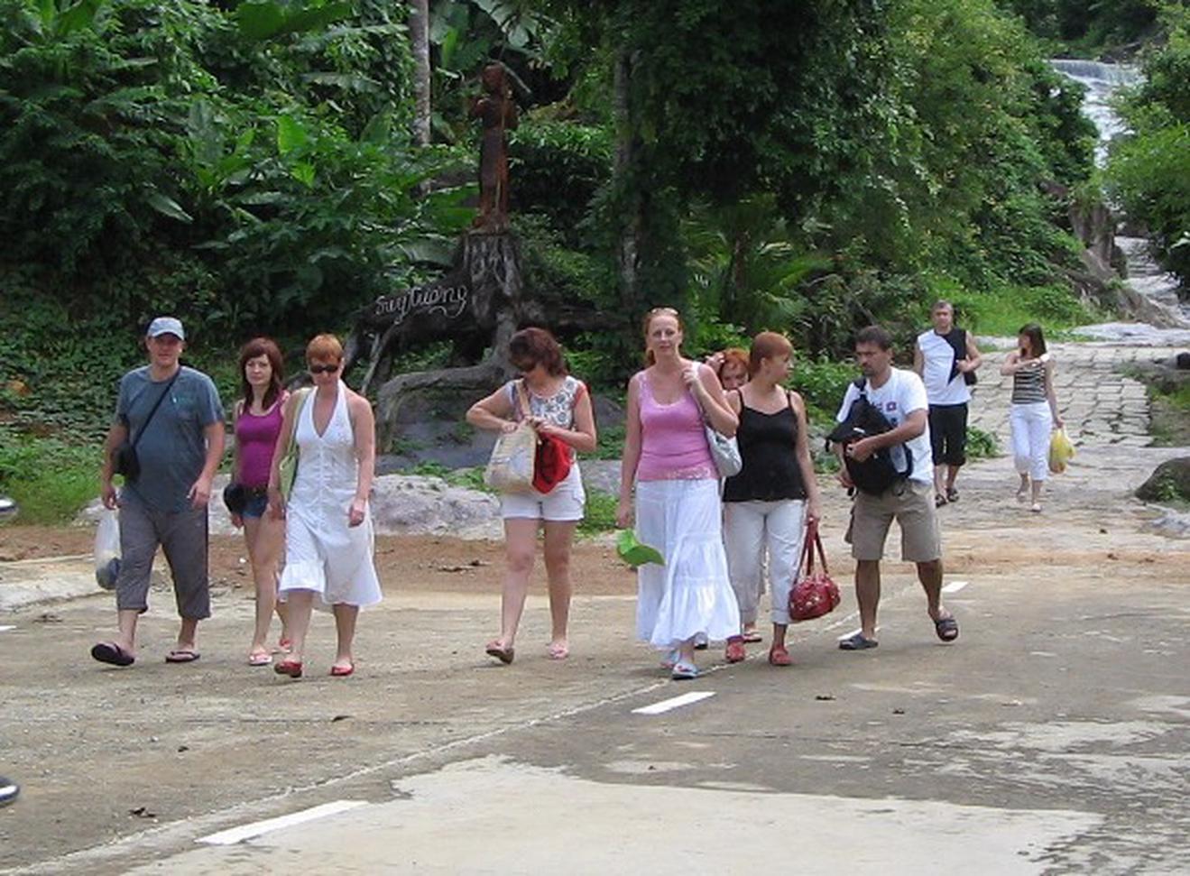 Khách du lịch Nga ở thác YangBay ở Nha Trang - Khánh Hòa. Ảnh: Thế Lữ