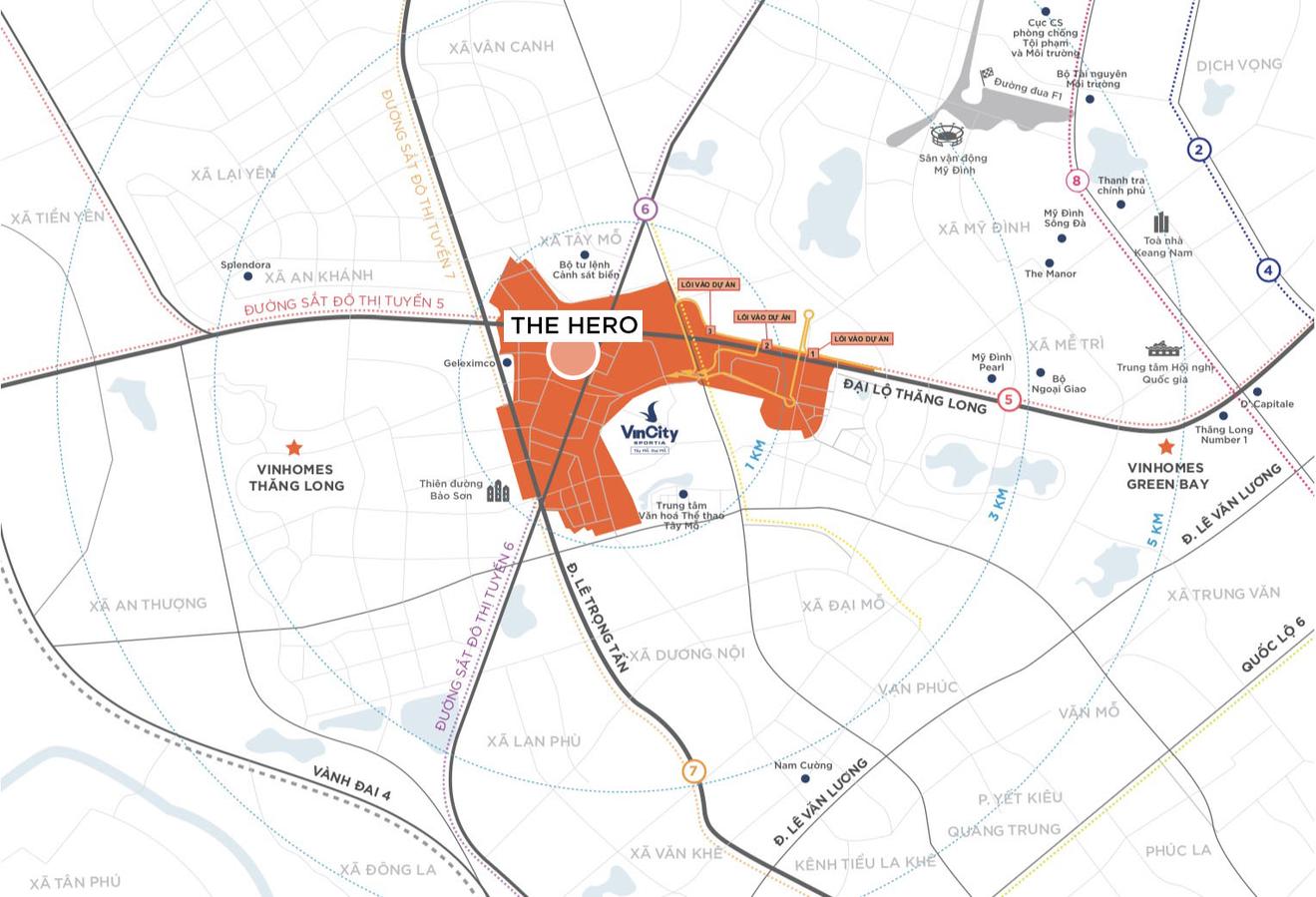Sở hữu vị trí ở cửa ngõ phía Tây của dự án, phân khu The Hero thừa hưởng trọn vẹn lợi kế vị trí của VinCity Sportia. Phân khu này liền kề Đại Lộ Thăng Long, các tuyến đường nội khu kết nối thẳng ra đường Lê Trọng Tấn và ga Metro trong tương lai...