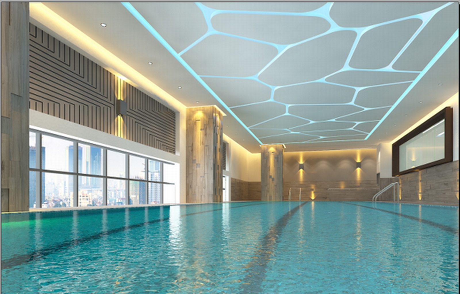 Khách hàng có thể nhìn thấy thành phố từ trên cao tại bể bơi bốn mùa rộng 300m2 ở Elite Fitness Vincom Center Nguyễn Chí Thanh