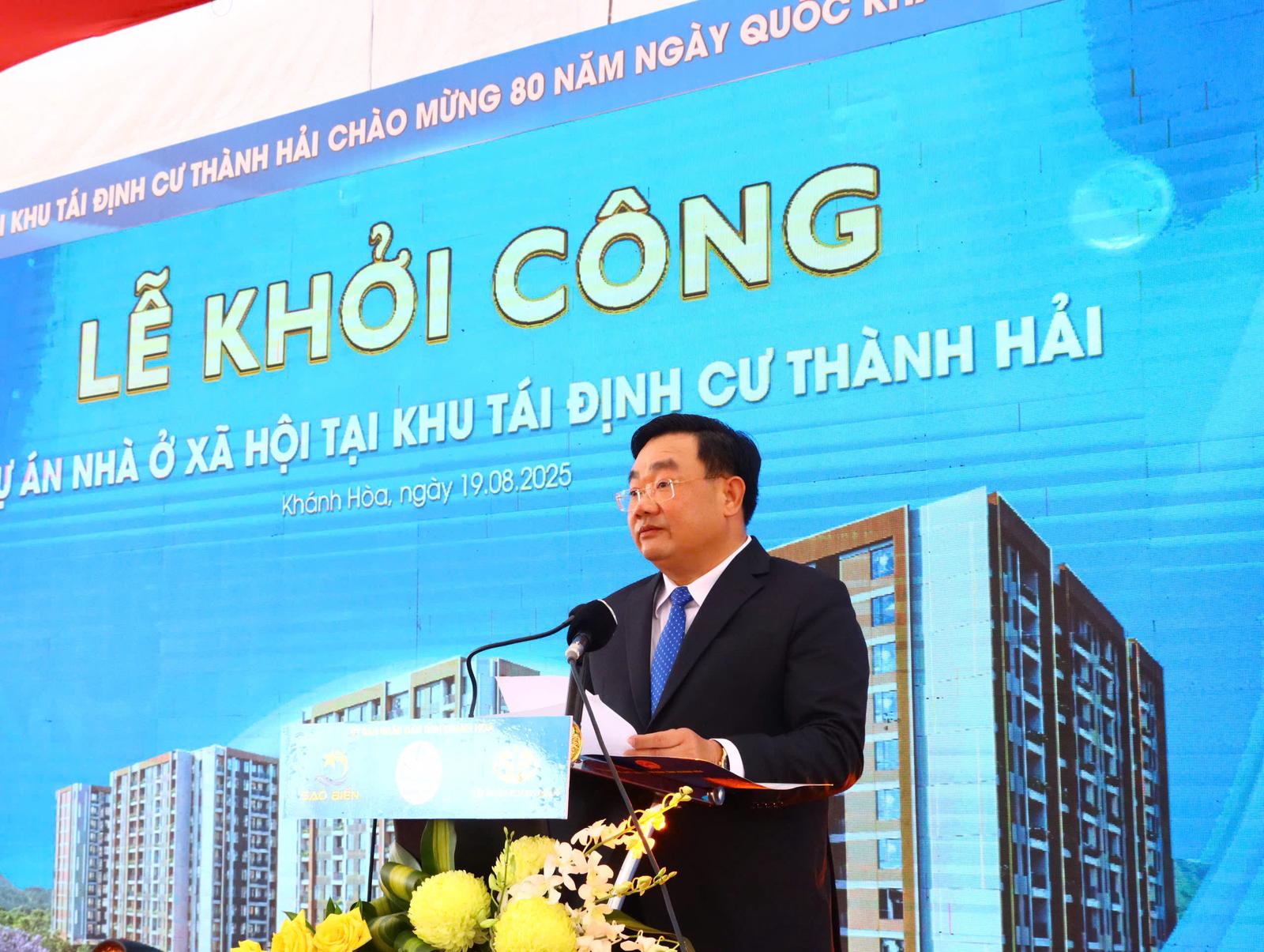 Ông Trịnh Minh Hoàng, Phó Chủ tịch UBND tỉnh Khánh Hòa phát biểu tại lễ khởi công Nhà ở xã hội tại Khu tái định cư Thành Hải. Ảnh. VT