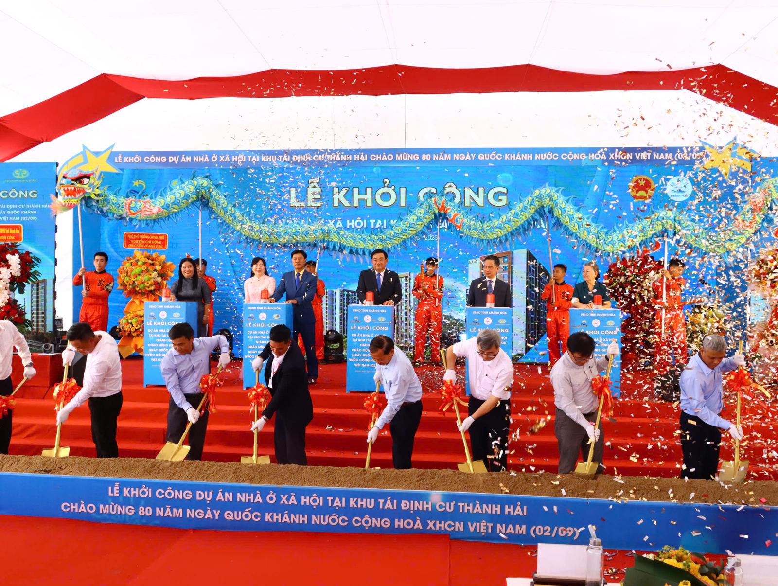 Bấm nút khởi công Nhà ở xã hội tại Khu tái định cư Thành Hải. Ảnh: VT