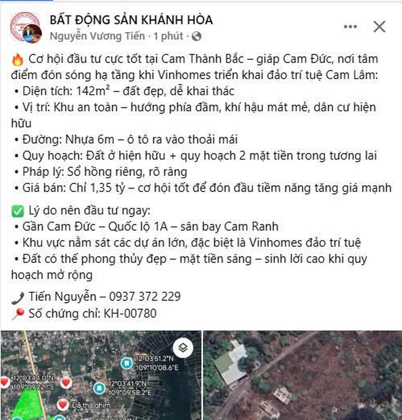 Một nhân viên môi giới bất động đã đăng kèm chứng chỉ môi giới trên các nền tảng xã hội. Ảnh: MXH