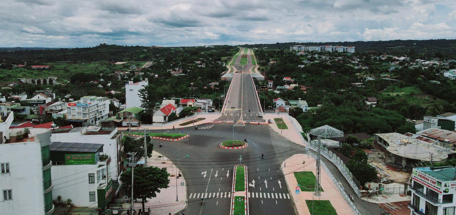 Toàn cảnh Dự án Đường Đông Tây, thành phố Buôn Ma Thuột chiều dài 6,9km điểm đầu trung tâm thành phố Buôn Ma Thuột, điểm cuối cảng Sân bay Hàng không Buôn Ma Thuột