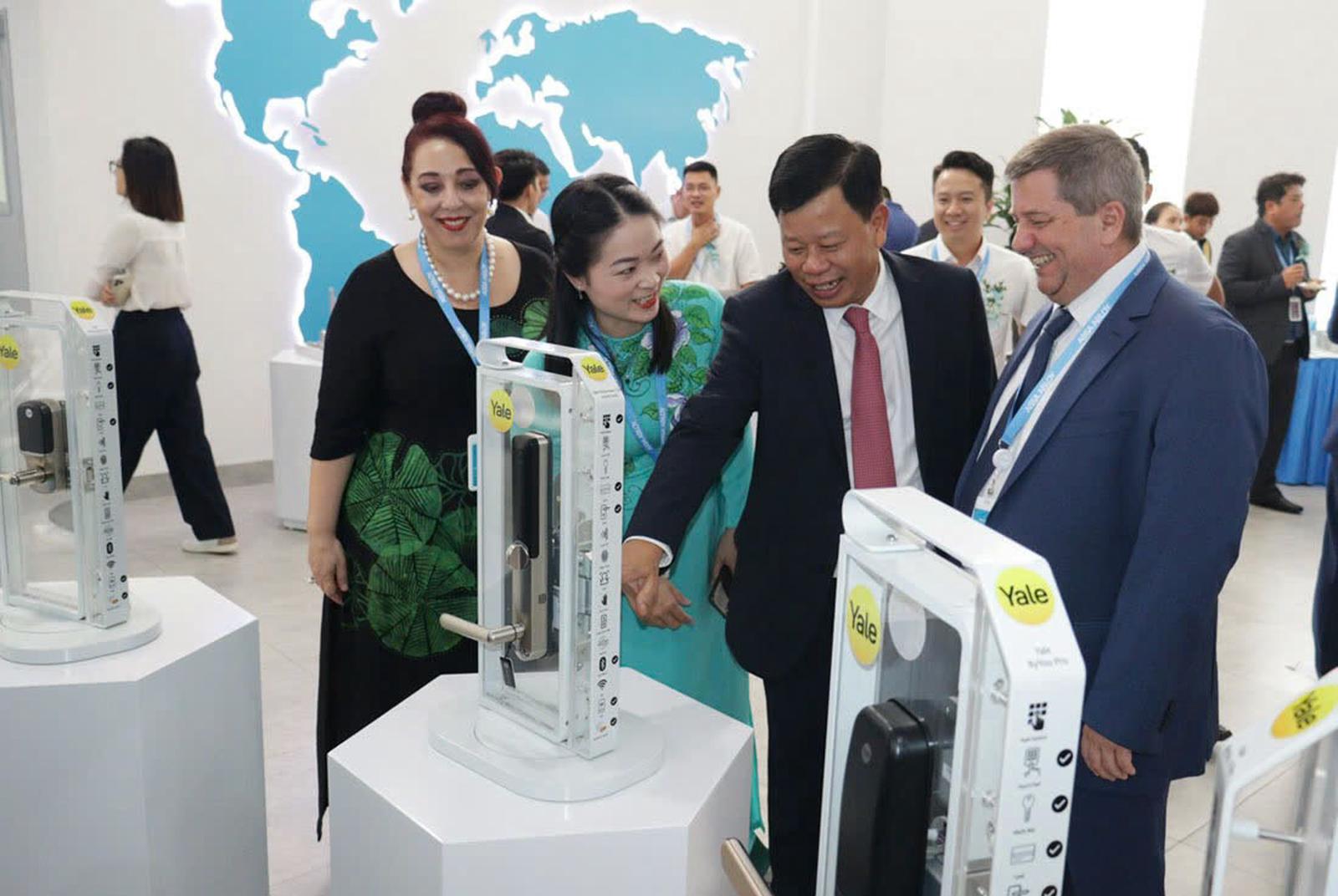 Các đại biểu cắt băng khánh thành Nhà máy Cấu trúc phần cứng Assa Abloy Việt Nam. Ảnh: KT