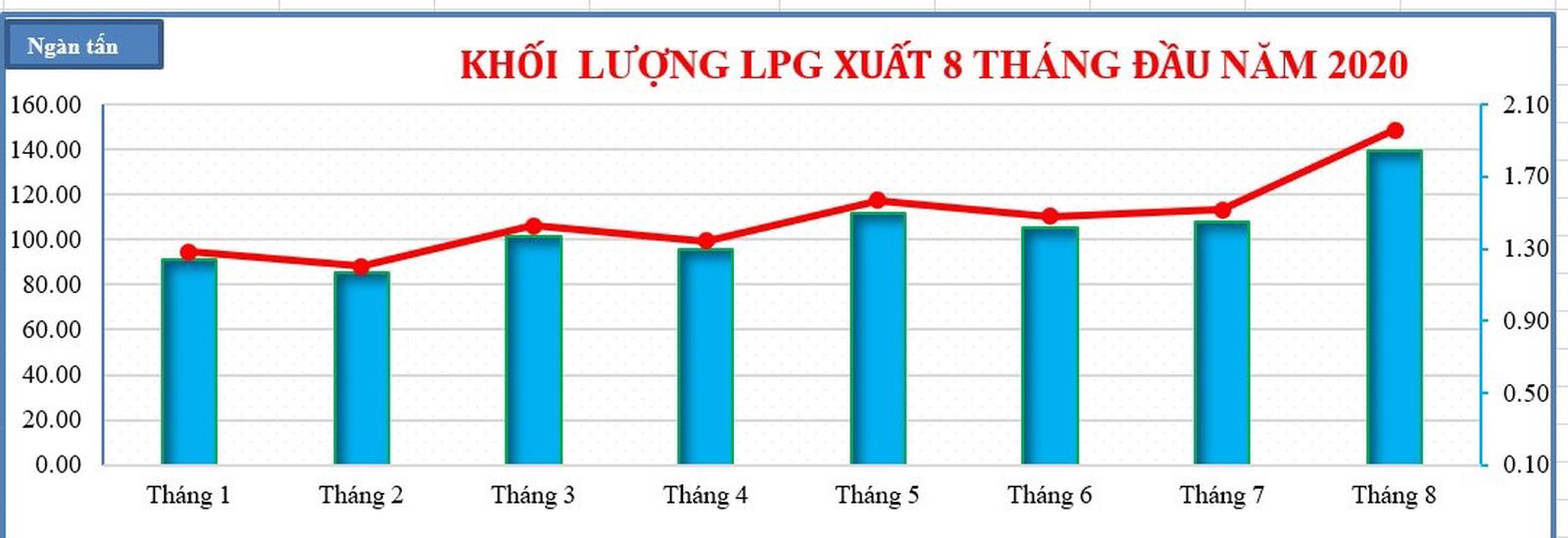 Biểu đồ cung cấp LPG tháng 8 tại Kho cảng PV GAS Vũng Tàu