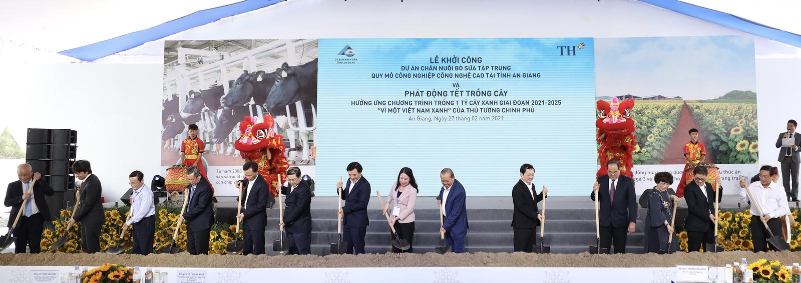 Ngay trước Lễ Khởi công, cũng trong sáng 27.2, lãnh đạo Chính phủ, tỉnh An Giang và Tập đoàn TH đã tham gia Lễ phát động Tết trồng cây tại khu di tích cách mạng Ô Tà Sóc, xã Lương Phi, huyện Tri Tôn, theo tinh thần của Chỉ thị 45/CT-TTg của Thủ tướng về tổ chức Tết trồng cây Vì một Việt Nam xanh, tăng cường công tác bảo vệ, phát triển rừng trên toàn quốc.