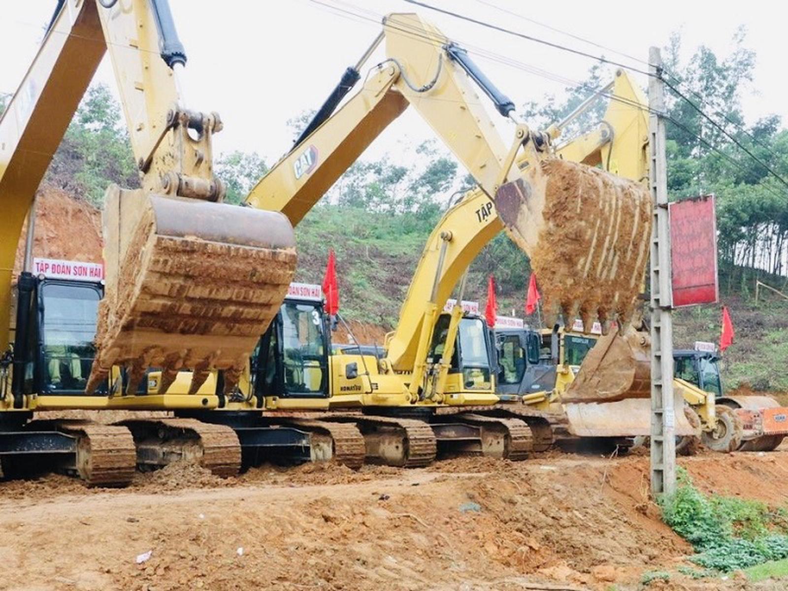 Nhà thầu thi công tập kết máy móc phục vụ công tác thi công. Ảnh: TQ