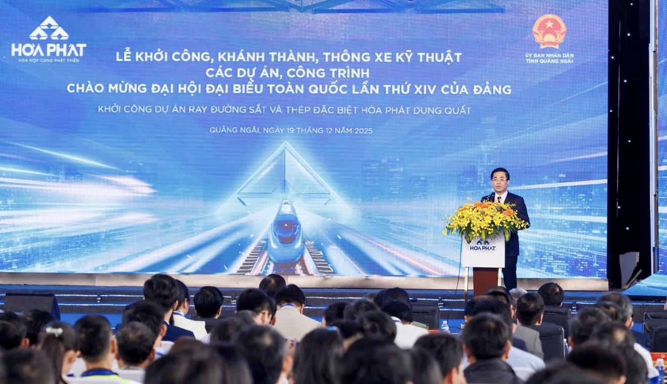 Phát biểu tại buổi lễ, ông Nguyễn Hoàng Giang, Chủ tịch UBND tỉnh Quảng Ngãi nhấn mạnh, DA được triển khai trong bối cảnh nhu cầu phát triển hạ tầng giao thông, đặc biệt là các DA đường sắt trọng điểm quốc gia, ngày càng lớn. Việc đầu tư nhà máy sản xuất ray đường sắt và thép đặc biệt phù hợp với định hướng phát triển công nghiệp của tỉnh, đồng thời đáp ứng chủ trương của Chính phủ về thúc đẩy công nghiệp phụ trợ trong nước, từng bước làm chủ công nghệ, giảm phụ thuộc vào nhập khẩu.