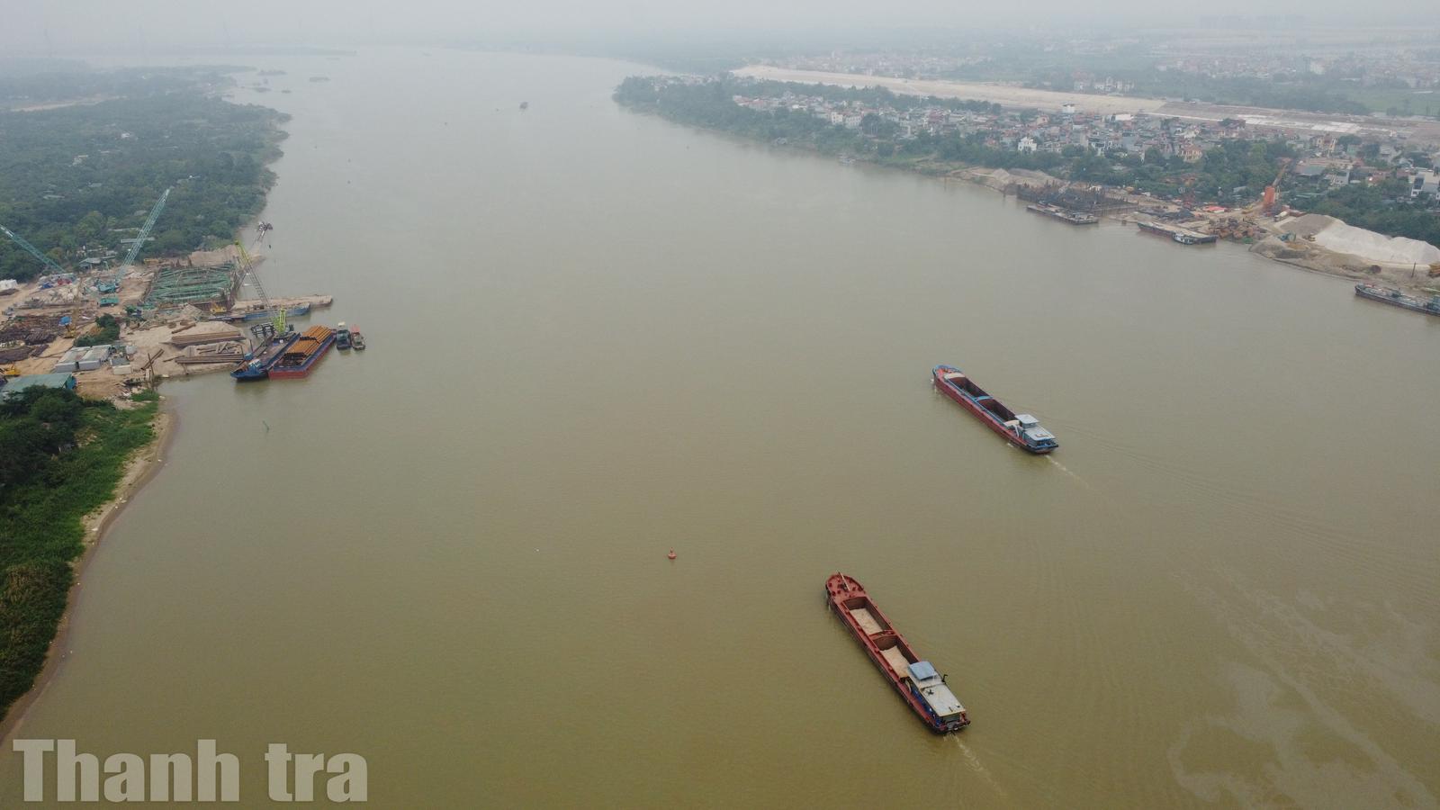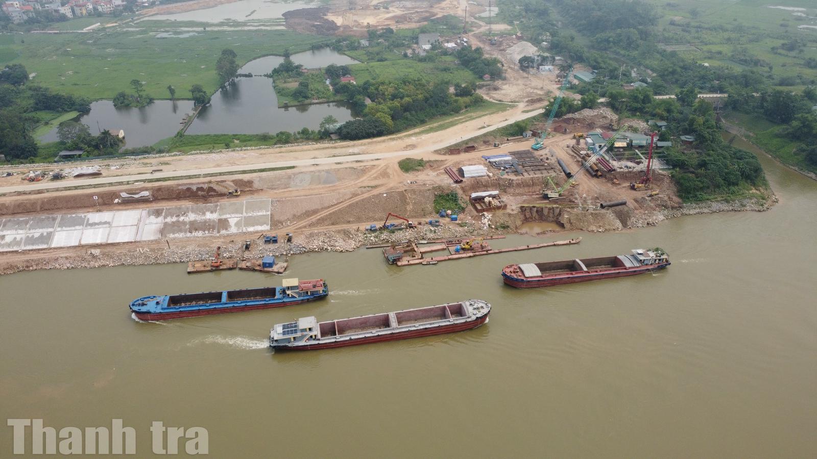 Hoạt động vận tải thủy nhộn nhịp trên sông Hồng, phục vụ vận chuyển vật liệu xây dựng cho dự án