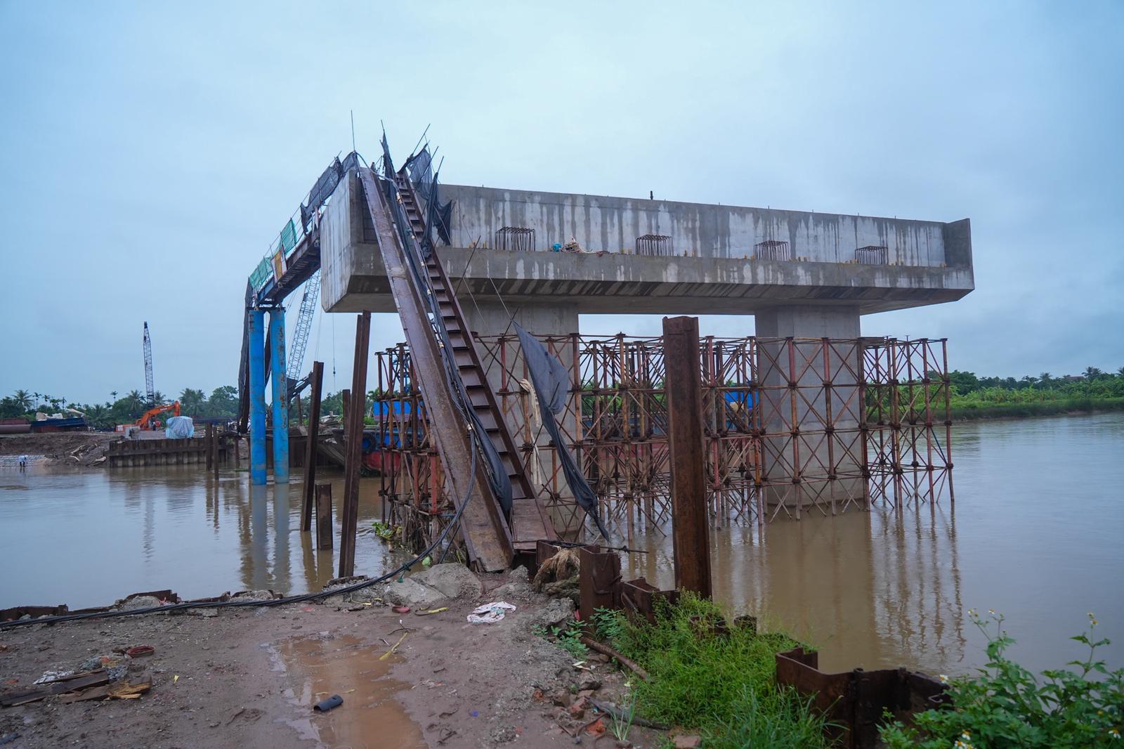 Về công tác thi công, hiện nay các nhà thầu đang tập trung triển khai thi công cọc khoan nhồi, bệ, thân, xà mũ các trụ; tường chắn hộp; cọc đất gia cố xi măng nền đường; dầm Super T; hoàn thành 55/108 cọc khoan nhồi, 04/100 dầm Super T, 04/11 trụ - mố. Giá trị khối lượng hoàn thành đến hết ngày 20/08/2024 đạt khoảng 115/493,3 tỷ đồng (xấp xỉ 23,3% giá trị hợp đồng).