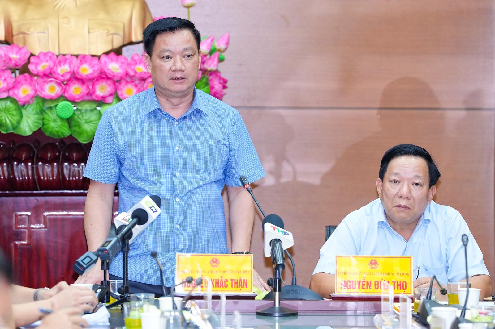 Chủ tịch UBND tỉnh Thái Bình Nguyễn Khắc Thận phát biểu. Ảnh: CT