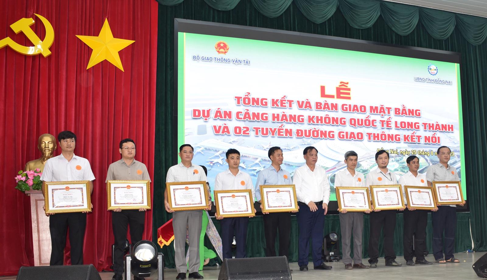 Dịp này, UBND tỉnh Đồng Nai cũng trao bằng khen cho 5 tập thể 68 cá nhân; UBND huyện Long Thành trao giấy khen 16 tập thể 229 cá nhân đã có thành tích trong thực hiện dự án Sân bay Long Thành và 2 tuyến đường kết nối sân bay.