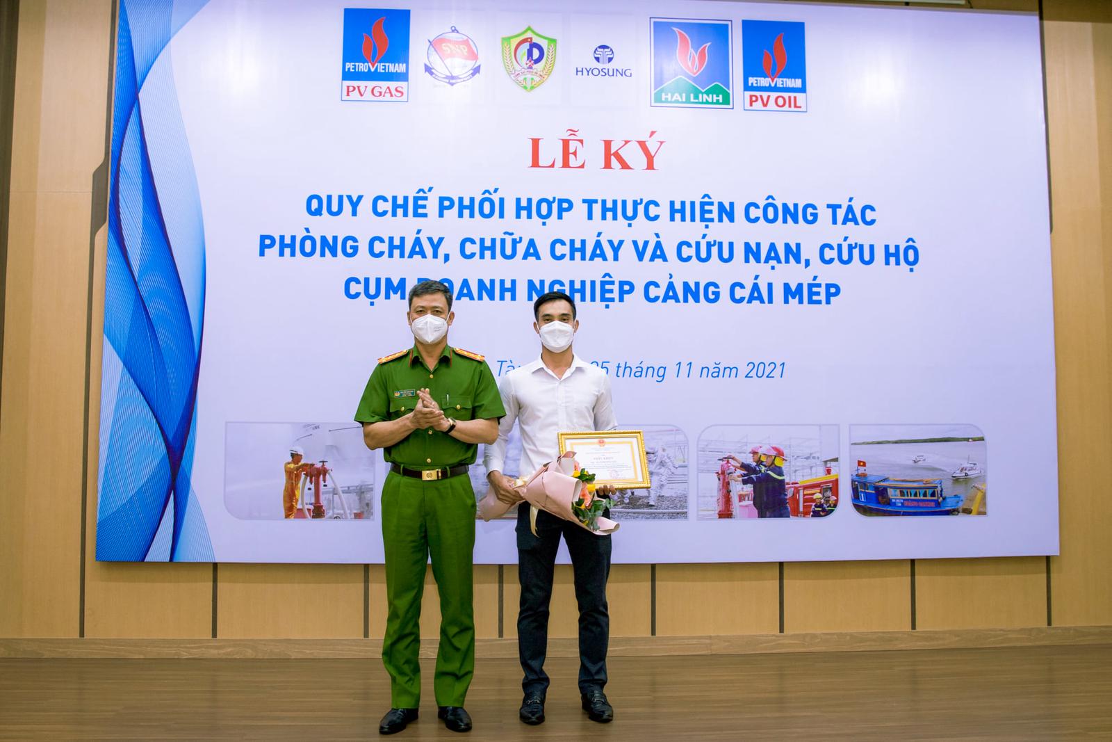 Ông Ngô Phương Bắc - Đội trưởng PCCC Kho cảng PV GAS Vũng Tàu vinh dự được nhận Giấy khen của Giám đốc Công an tỉnh cho cá nhân đã có thành tích xuất sắc trong công tác PCCC & CNCH.