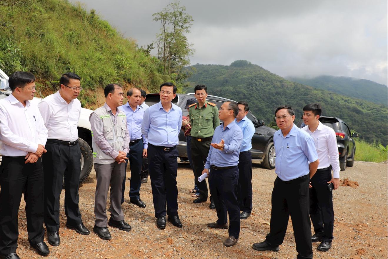Chủ tịch UBND tỉnh Lâm Đồng Hồ Văn Mười trực tiếp kiểm tra thực trạng dự án cải tạo, nâng cấp Quốc lộ 28B vào ngày 22/10 vừa qua. Ảnh: BLĐ