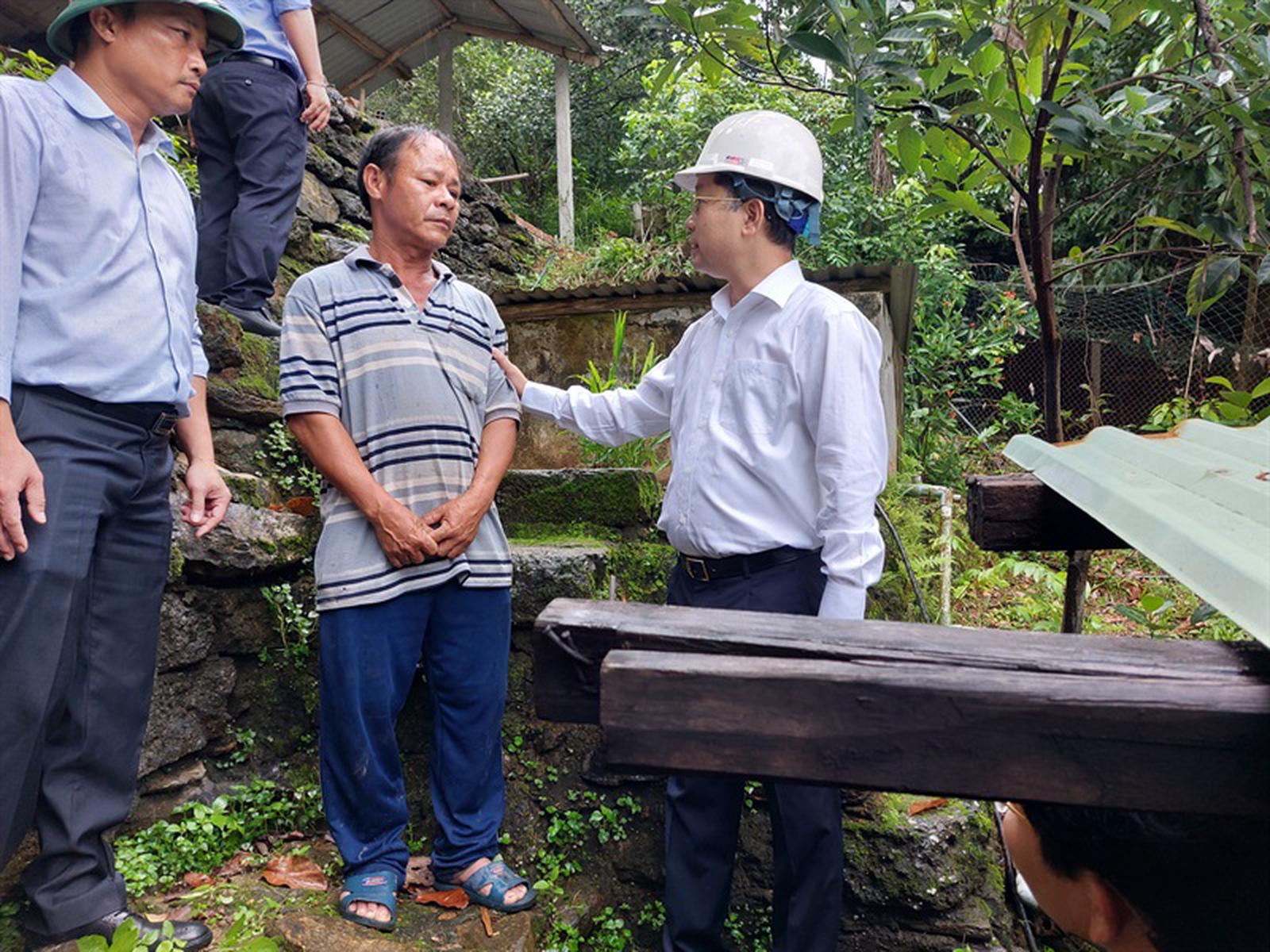 Bí Thư Thành ủy Đà Nẵng Nguyễn Văn Quảng thăm, động viên người dân khu vực núi Ông Sọ (Hòa Sơn) mùa mưa năm 2022. Ảnh: N.P