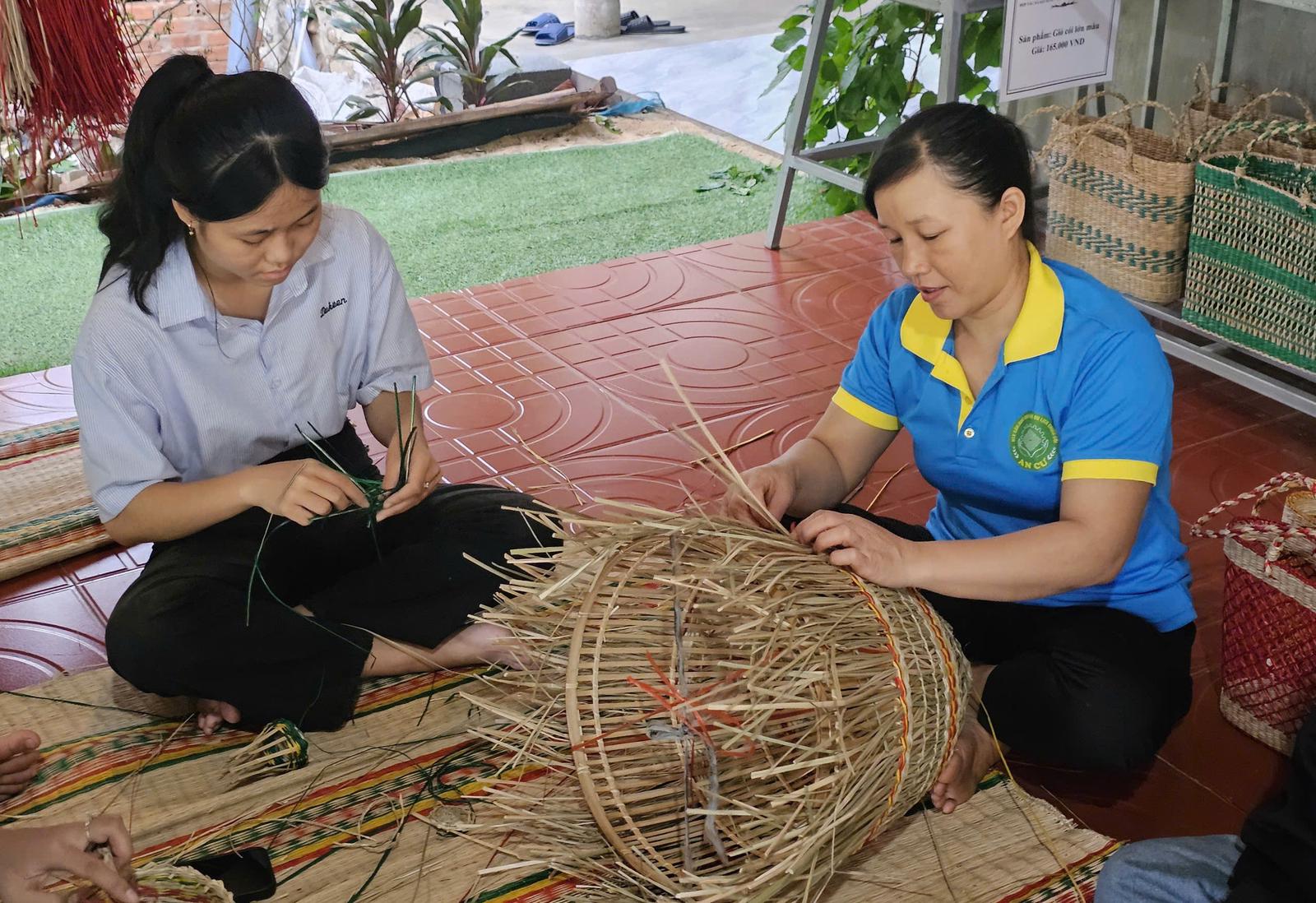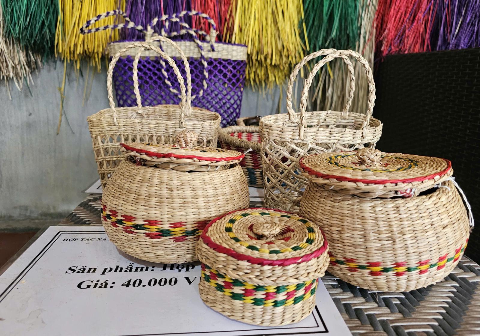 Ngoài chiếu còn làm ra nhiều sản phẩm du lịch khác từ cây cói. Ảnh: P.B