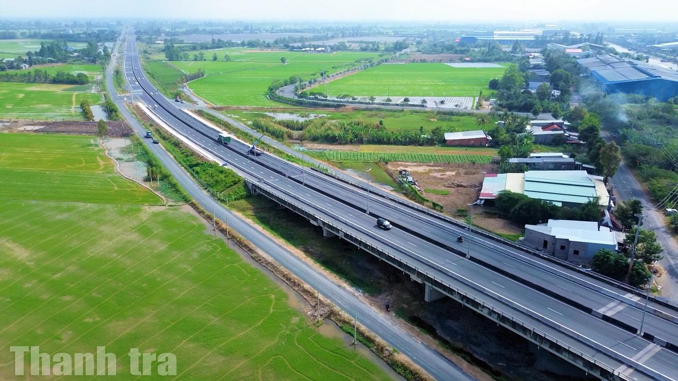 Những con đường "mùa Xuân" mở ra cánh cửa mới cho đầu tư và sản xuất. Miền Tây hôm nay không còn là “vùng trũng” về kết nối, mà đang từng bước hòa nhịp vào dòng chảy phát triển chung của cả nước. Trong ảnh là tuyến cao tốc Cần Thơ - Cà Mau. Ảnh: Minh Giàu