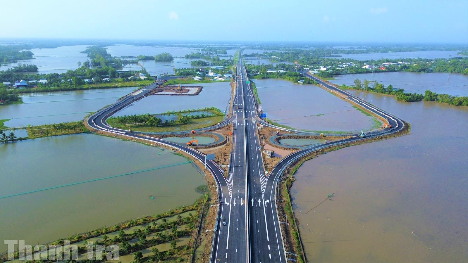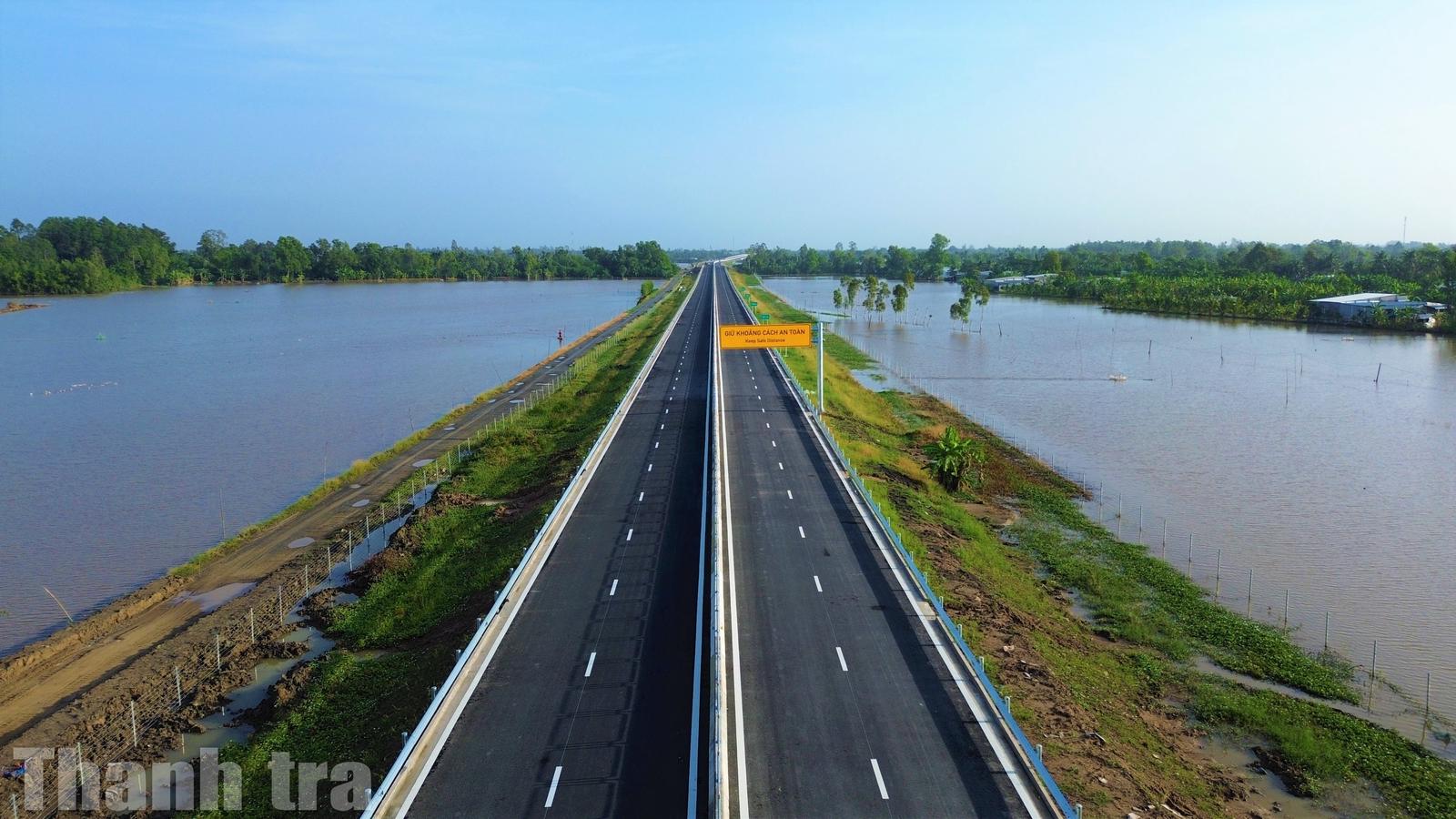 Tuyến đường bộ cao tốc Cần Thơ - Cà Mau đã chính thức nối liền trục Cần Thơ - Hậu Giang - Cà Mau, lần đầu tiên mở ra hành trình liền mạch về cực Nam Tổ quốc bằng cao tốc. Ảnh: Minh Giàu