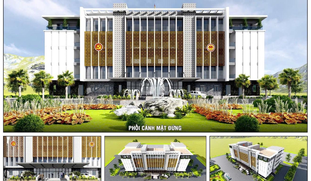 Phối cảnh dự án trụ sở huyện Con Cuông tạm dừng thi công. Ảnh: P.V
