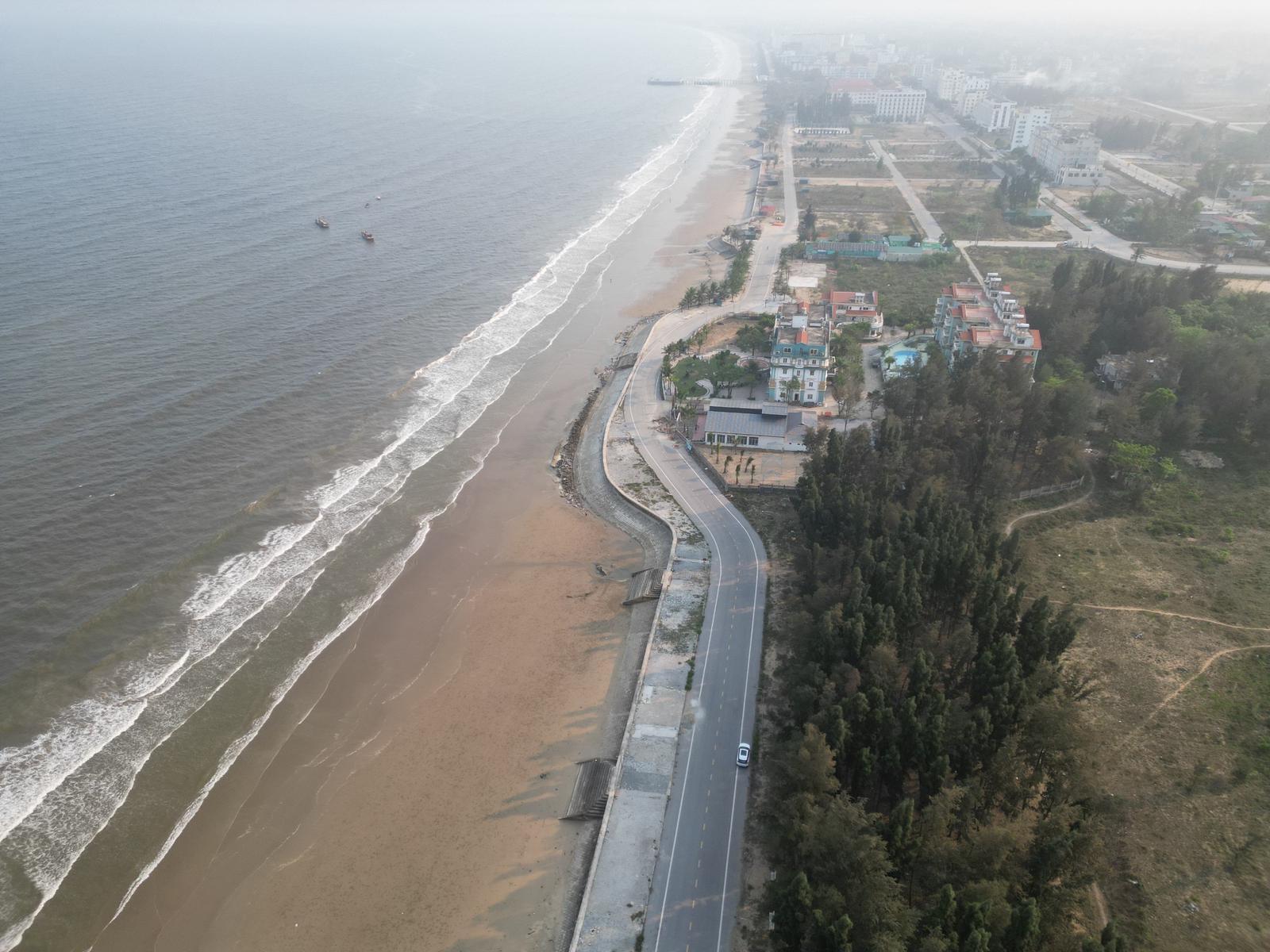 Theo ghi nhận, đường bờ biển Hải Tiến dài 12km nhưng tuyến đường chạy dọc theo bờ biển lại bị chia thành nhiều khúc, cong queo, uốn lượn… Hiện có 6 điểm bị ngắt khúc, chỗ phình ra biển, chỗ bóp lại, có những đoạn đường uốn cong, lấn ra biển để tránh khu nghỉ dưỡng. Bên cạnh những đoạn đường “cong mềm mại” trên bờ thì dưới bãi biển cũng xuất hiện rất nhiều các điểm cong khi tuyến đê kè bị “chặt” nhiều đoạn lấn ra biển nên bãi tắm có chỗ lồi ra, chỗ thụt vào.