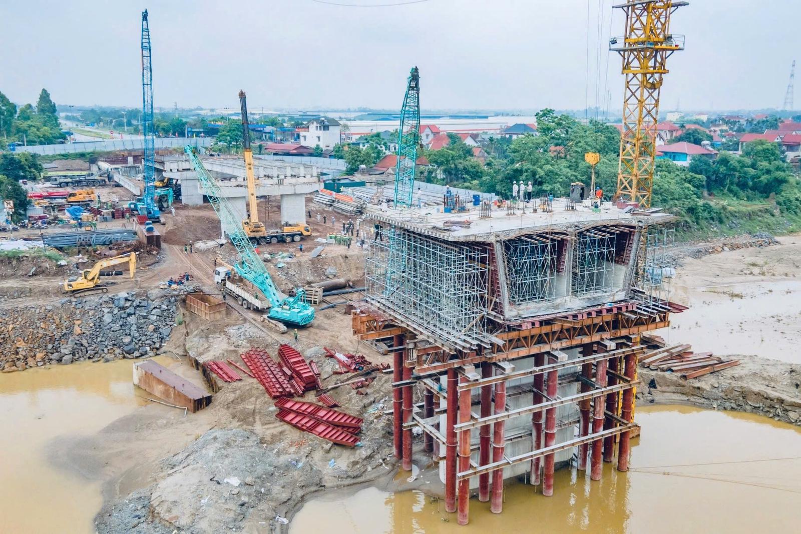 Hiện đã thi công hoàn thành trụ T4; hoàn thành lắp dựng cẩu tháp và đổ bê tông đốt K0 đợt 1; đang triển khai lắp đặt tổ hợp xe đúc.