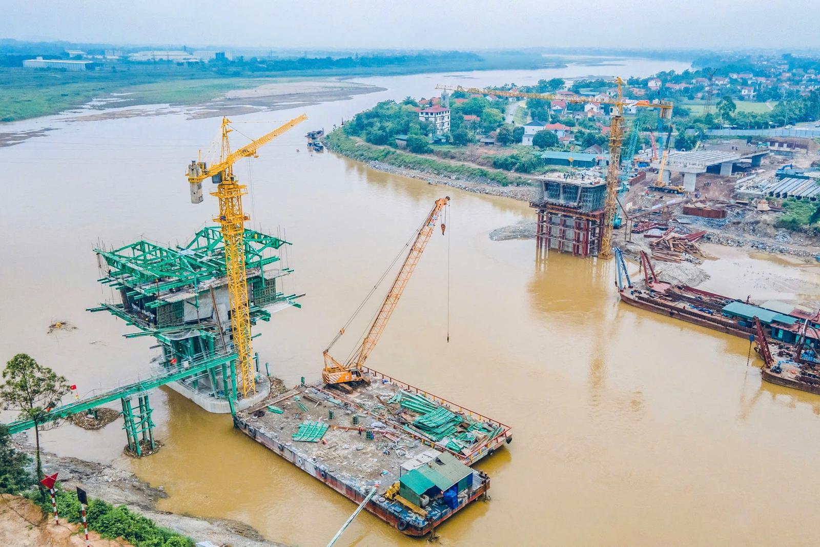 Nhiều hạng mục công trình Dự án cầu Phong Châu mới vượt tiến độ. Ảnh: TQ