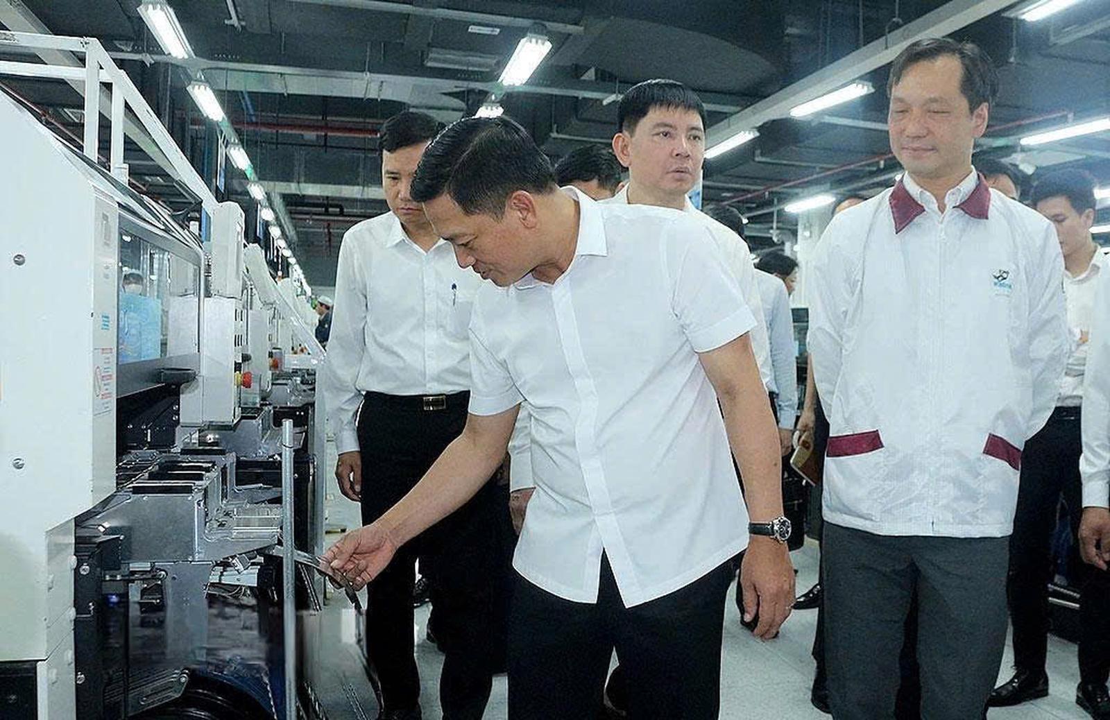 Phó Chủ tịch UBND tỉnh Nguyễn Cao Sơn thăm Công ty Wistron Infocomm Việt Nam (KCN Đồng Văn III). Ảnh: BNB