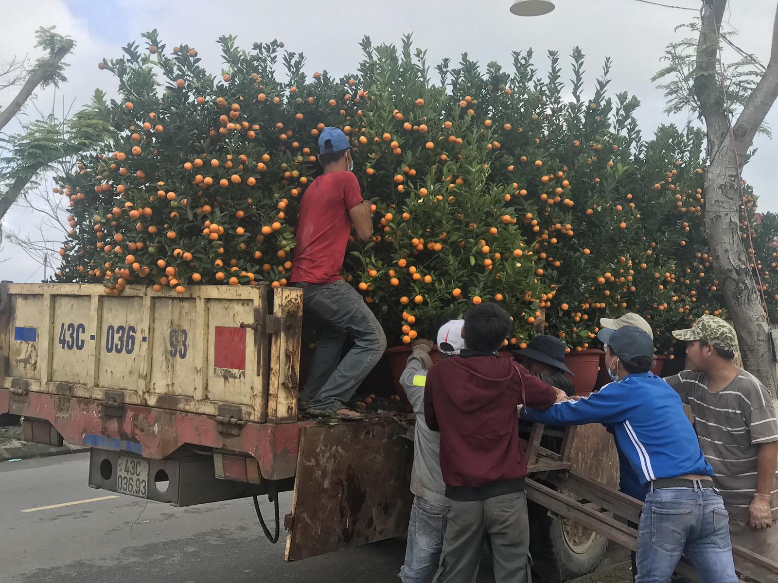 Cạnh đó là anh Nguyễn Văn Tình - chủ vựa quất với gần 500 chậu lớn, trị giá vài trăm triệu đồng. Anh Tình than thở: “Quất năm nay không cao to bằng năm trước nhưng trái vàng đều, lá xanh mịn trông cũng bắt mắt; nhưng đến chiều ni mà người mua rất hiếm, lỗ nặng cầm tay là chắc rồi…”. Để cứu vớt, anh Tình phải thuê xe vận chuyển bớt số lượng quất về các điểm ở huyện Đại Lộc, Duy Xuyên, Núi Thành (Quảng Nam); hay các vùng quê khác để tìm khách bán. Chi phí tăng cao nhưng không biết có bán theo giá gốc được hết không?