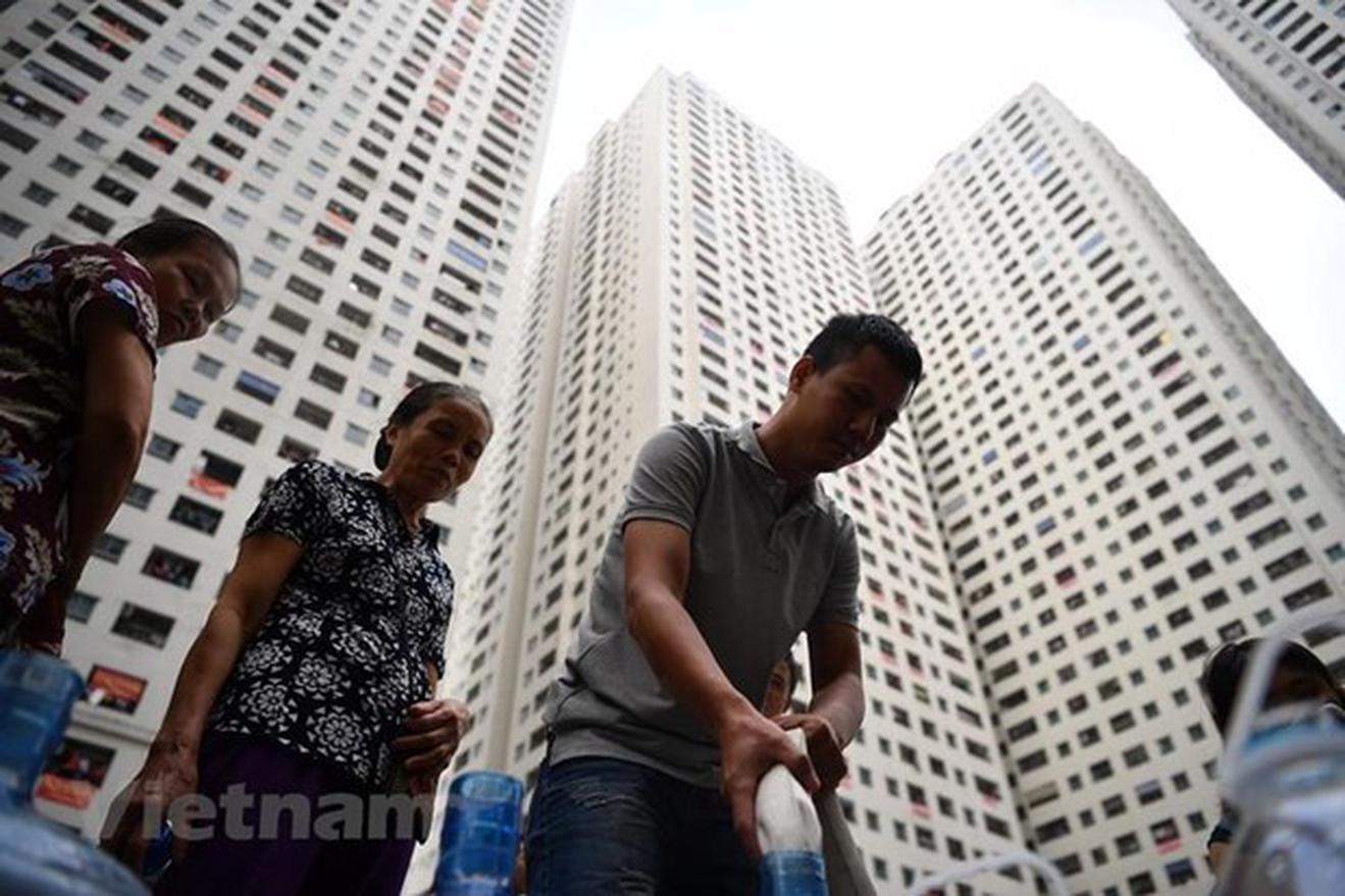 Người dân Linh Đàm lấy nước sạch về sử dụng sau sự cố Viwasupco (Ảnh: Minh Sơn/Vietnam+)