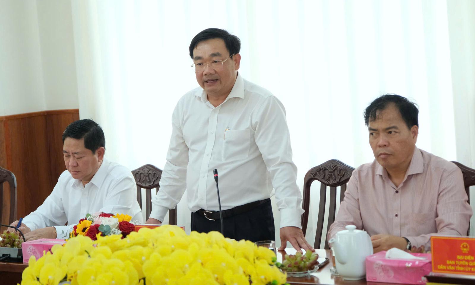 Phó Chủ tịch UBND tỉnh Khánh Hòa Trịnh Minh Hoàng báo cáo với đoàn công tác. Ảnh: Vũ Linh