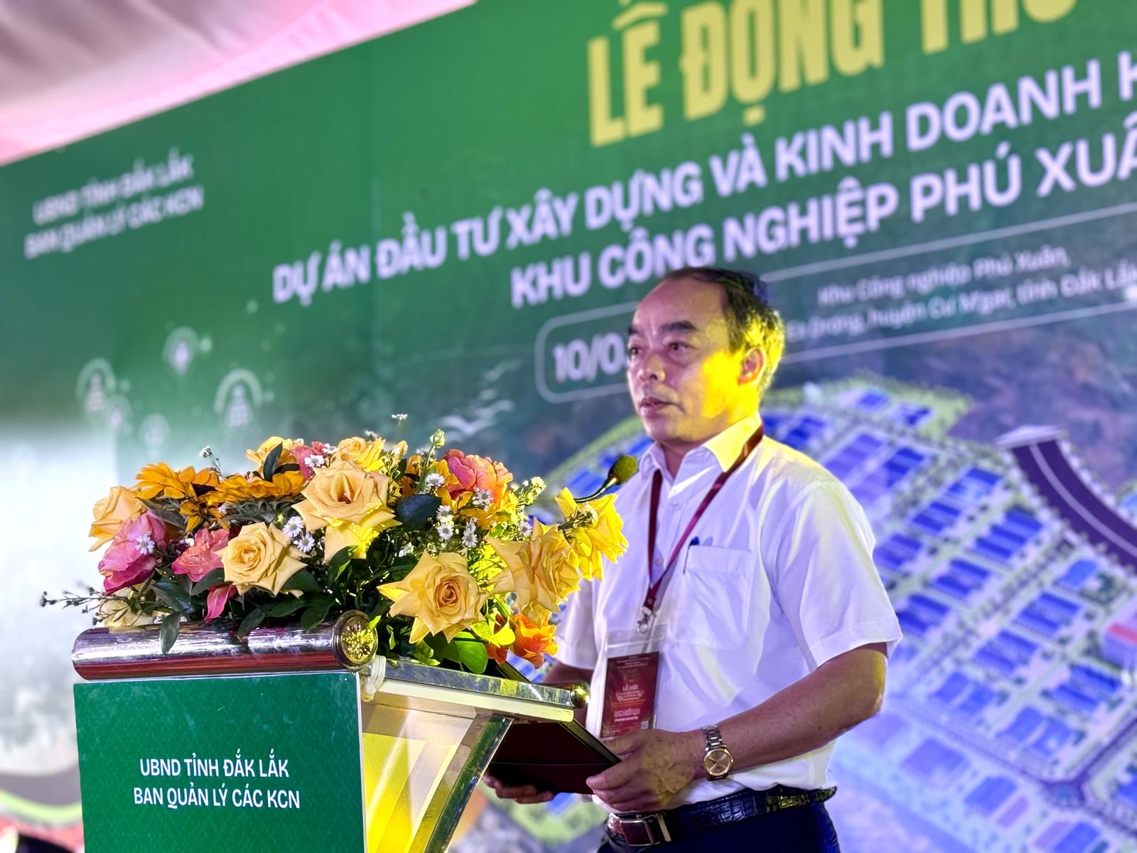 Phát biểu khai mạc sự kiện, ông Đinh Xuân Diệu - Trưởng BQL các KCN tỉnh Đắk Lắk cho biết, dự án đầu tư xây dựng và kinh doanh kết cấu hạ tầng KCN Phú Xuân có ý nghĩa đặc biệt quan trọng đối với địa phương.