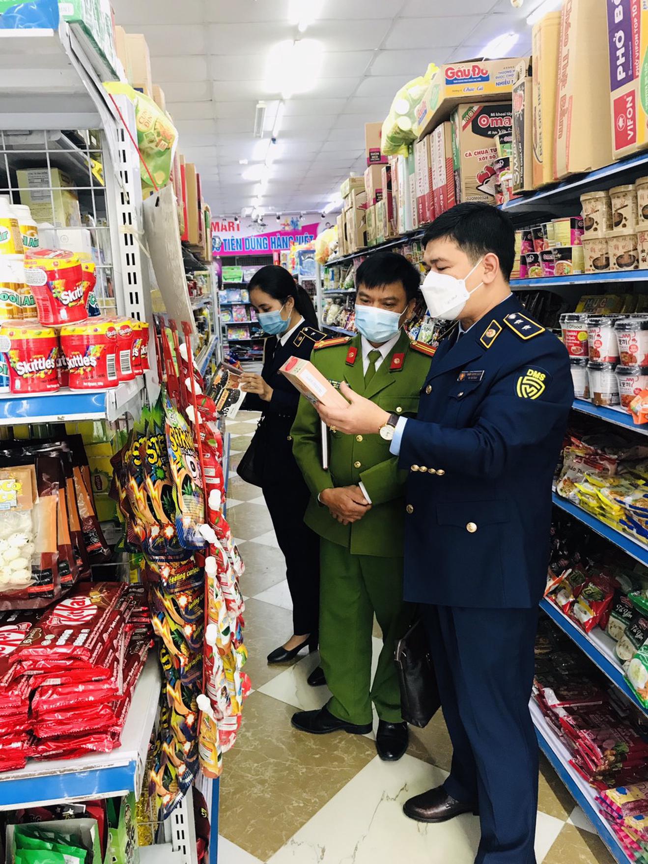 Lực lượng quản lý thị trường phối hợp cùng công an kiểm tra các mặt hàng tiêu dùng, thiết yếu