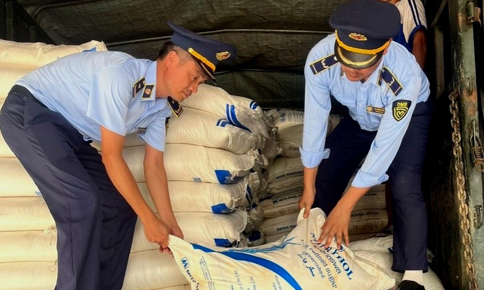 QLTT tỉnh Quảng Trị phát hiện một vụ buôn lậu đường kính trắng được giấu lẫn vào các lô hàng có hóa đơn, chứng từ hợp pháp. Ảnh: QLTT Quảng Trị