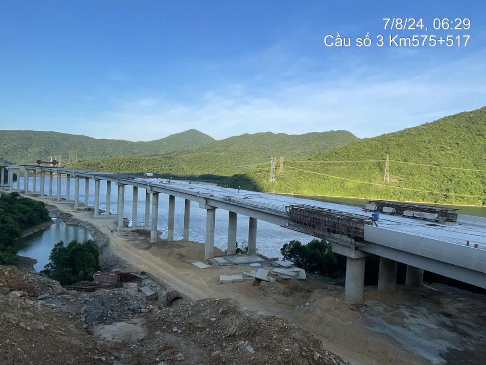 Cầu số 3 Km 575+517 đang được nhà thầu gấp rút thi công. Ảnh: TQ